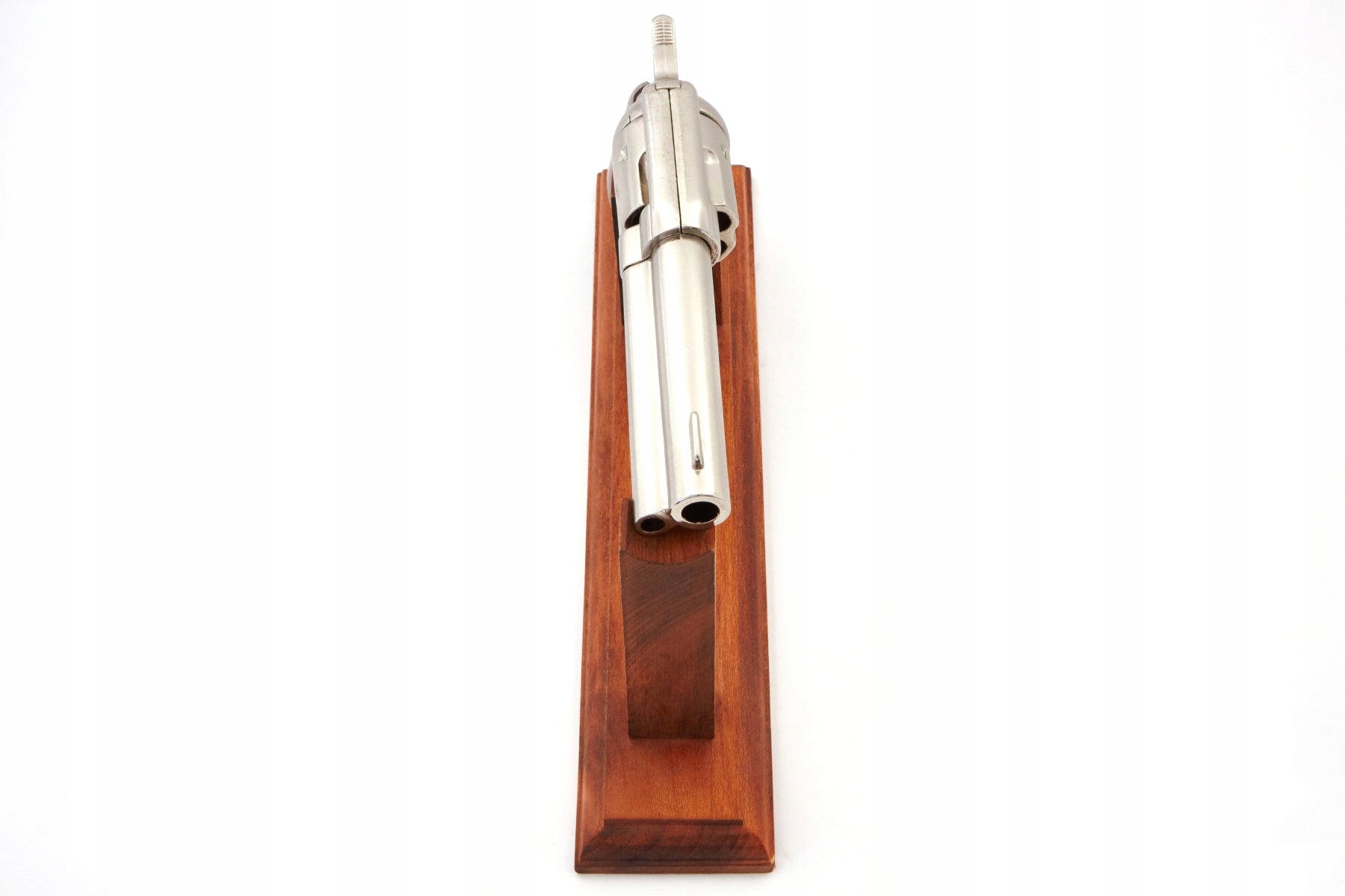 Он изготовлен из полированного дерева и металла. Механизм, оснащенный подвижным спусковым крючком и краном, позволяет стрелять так называемым сухим выстрелом.