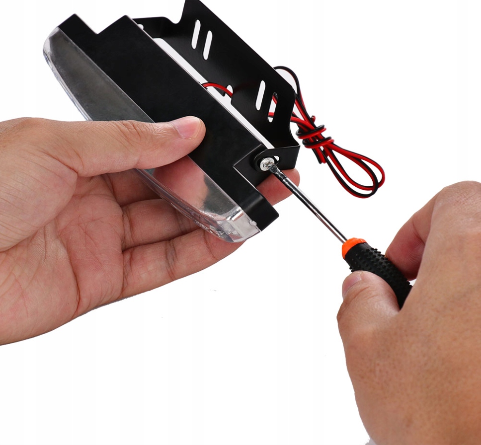 В комплект дневных ходовых огней также входят металлические кронштейны и винты для крепления, установка ламп очень проста, достаточно прикрутить саморезами патроны ламп и затем прикрепить лампы например, в бампере нашей машины.