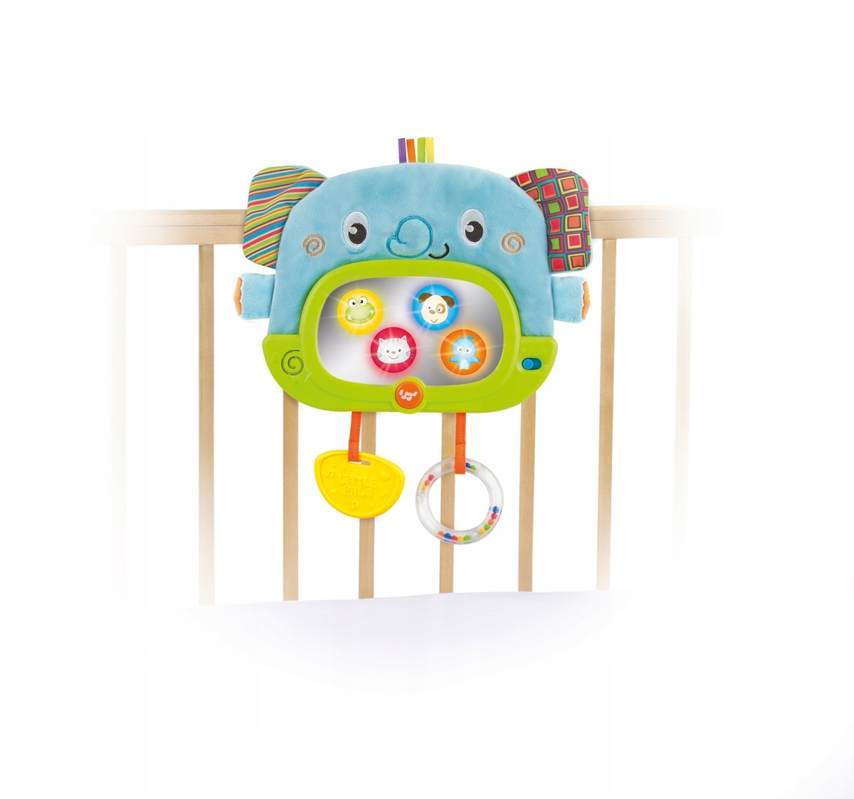 - Игрушку легко прикрепить к кроватке.