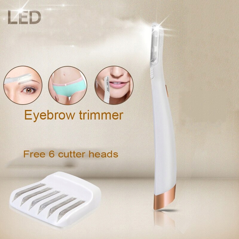 DEPILATOR TRYMER MASZYNKA DO BRWI I TWARZY USB LAMPKA LED + 6 OSTRZY