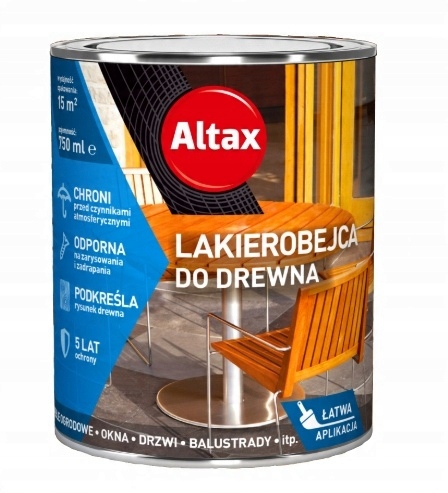 Артакс лак для древесины защитит поверхность от ряда неблагоприятных внешних факторов, таких как низкие температуры, биокорпозия или ультрафиолетовое излучение. Продукт подходит для использования как на садовой мебели, так и для защиты балюстрады или окон. Подготовка доступна в оттенке клещей, что было дополнительно подчеркнуто с помощью впечатляющего полу -цирки.