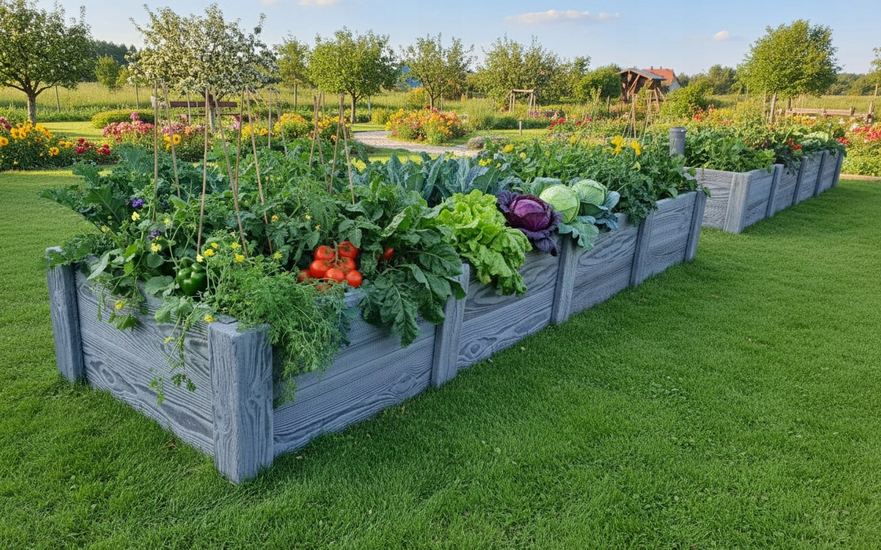 бетонный огород, древовидный, коробчатый, приподнятый, клумба-2-отделения
