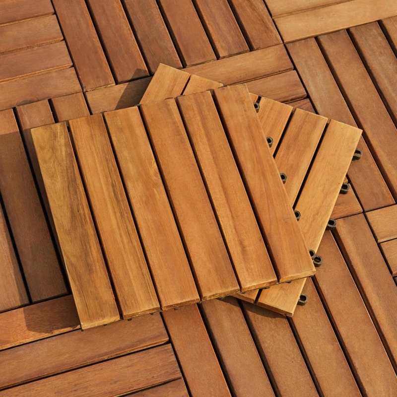 Плитка деревянная 30х30см из твердых пород дерева акация, устойчивая к погодным условиям, пригодная для террас, балконов, бассейнов, соляриев, джакузи и т. д. Плитка не может иметь прямого контакта с почвой. Простой монтаж защелками без инструментов