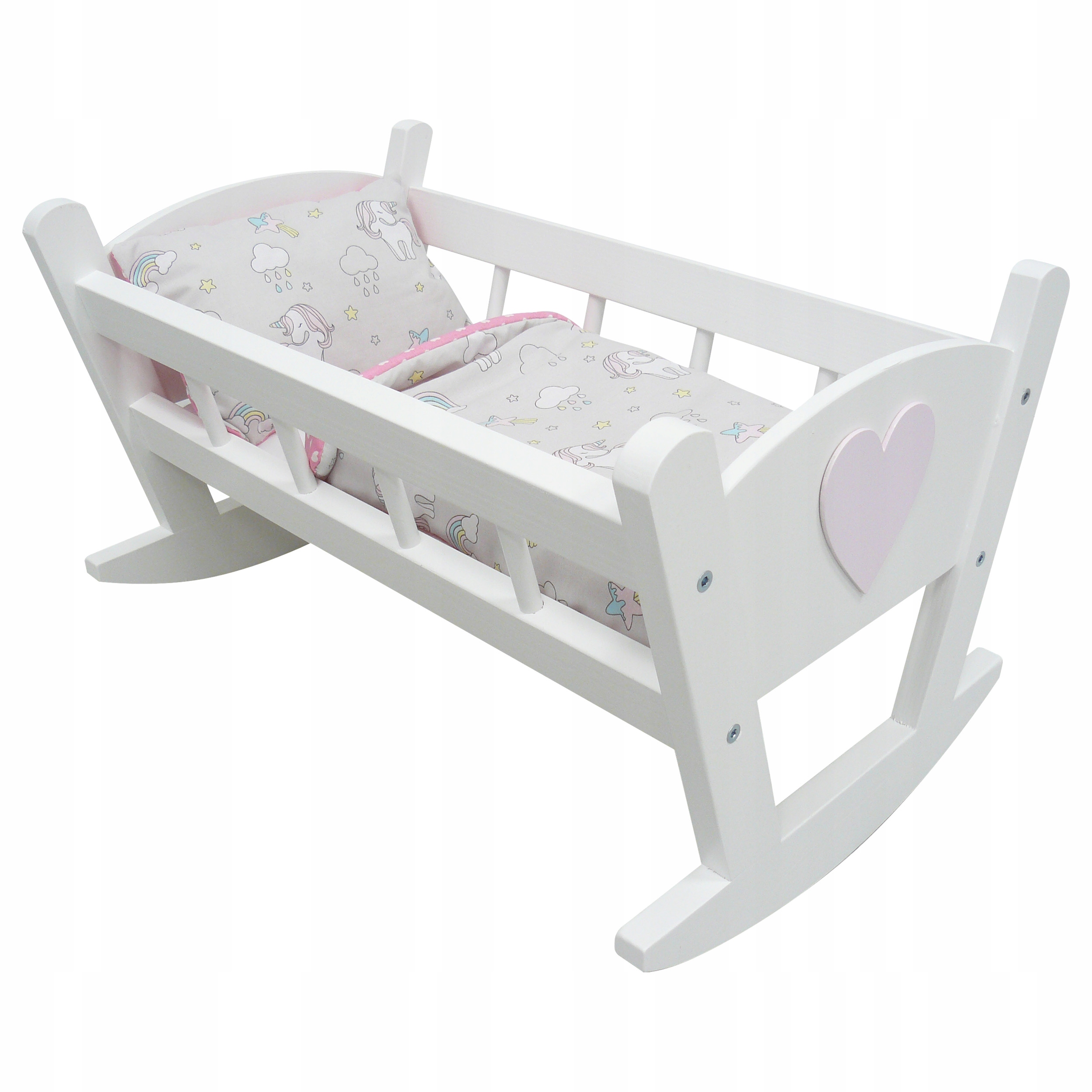 ДЕРЕВ'ЯНА БІЛА ЛЮЛЬКА ДЛЯ ЛЯЛЬОК + ПОСТІЛЬНА БІЛИЗНА ЄДИНОРІГ СІРИЙ!!!