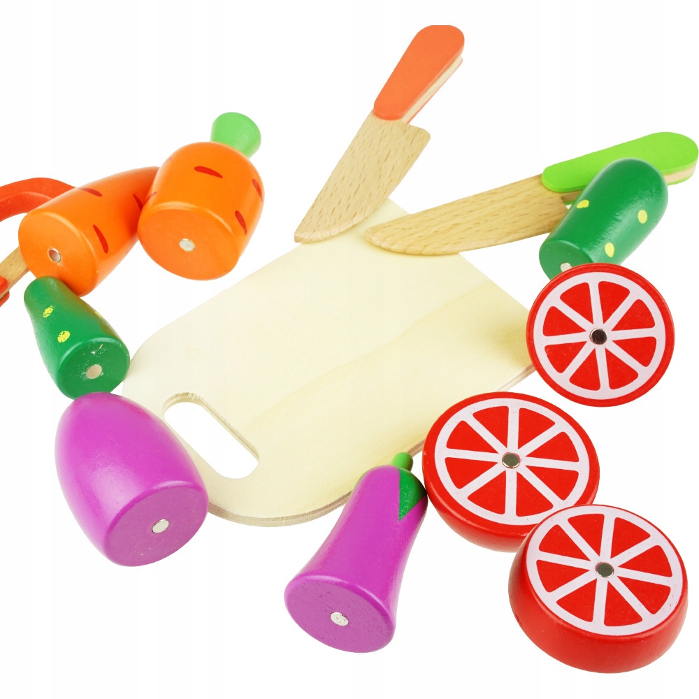 Деревянная доска с овощами - прекрасное дополнение на кухне маленького повара.