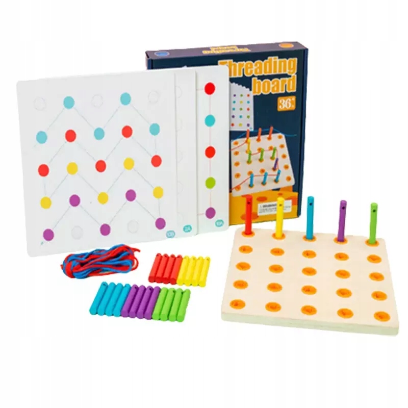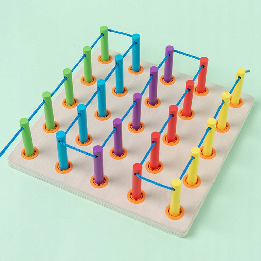 Манипуляционная головоломка с деревянными кубиками и переплетениями — идеальное учебное пособие в соответствии с концепцией Марии Монтессори. Этот набор позволяет детям погрузиться в мир цветов и воссоздать узоры. Детям наверняка понравится эта интерактивная игра, которая позволяет им использовать интересные инструменты и развивать воображение. Этот набор является отличным обучением манипуляциям ребенка, которому нужно вставлять колышки и переплетать веревочки. Это отличный продукт, который можно использовать дома или во время занятий в группах со сверстниками.