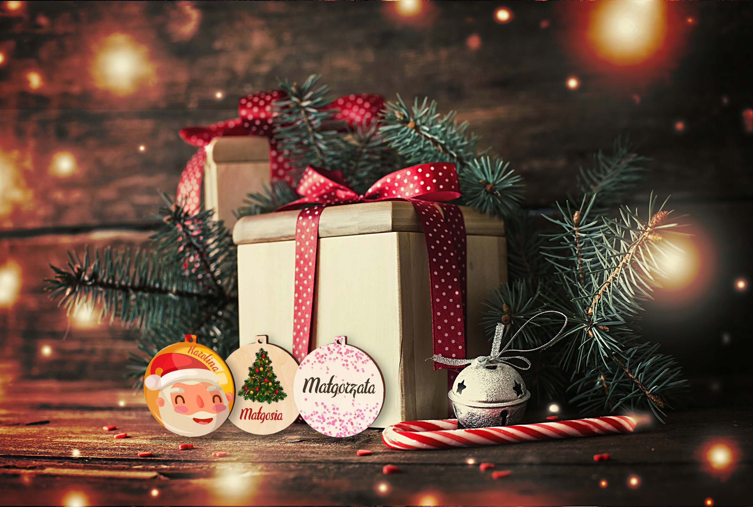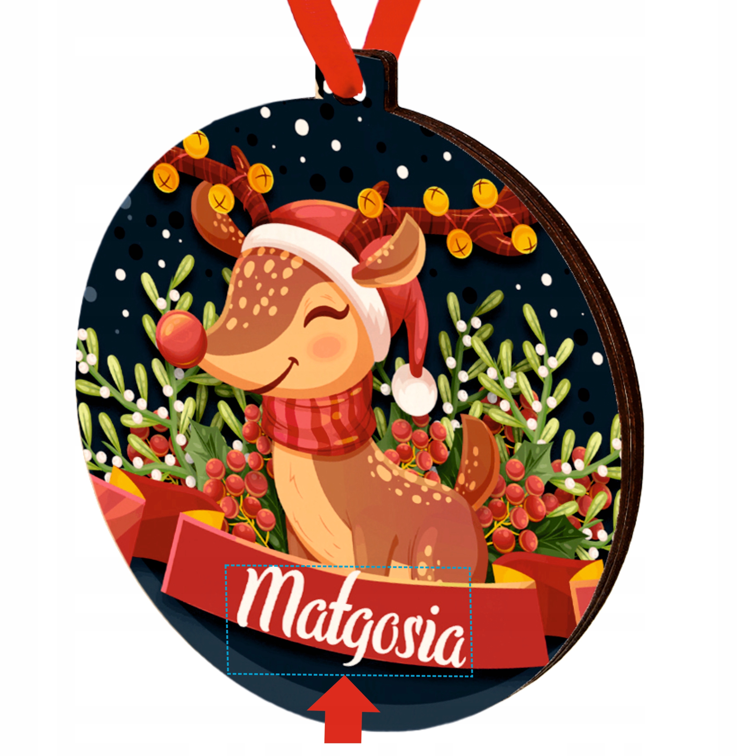 Деревянная безделушка с ИМЕНЕМ, подвеска на ёлку + красная лента