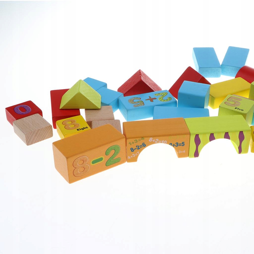 Набор из 46 штук различных деревянных кубиков в форме геометрии. Познавательная игрушка - цифры