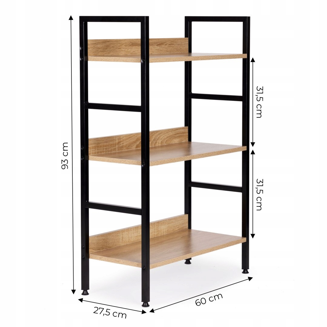 Деревянный книжный шкаф современный металлический каркас лофт 3 полки