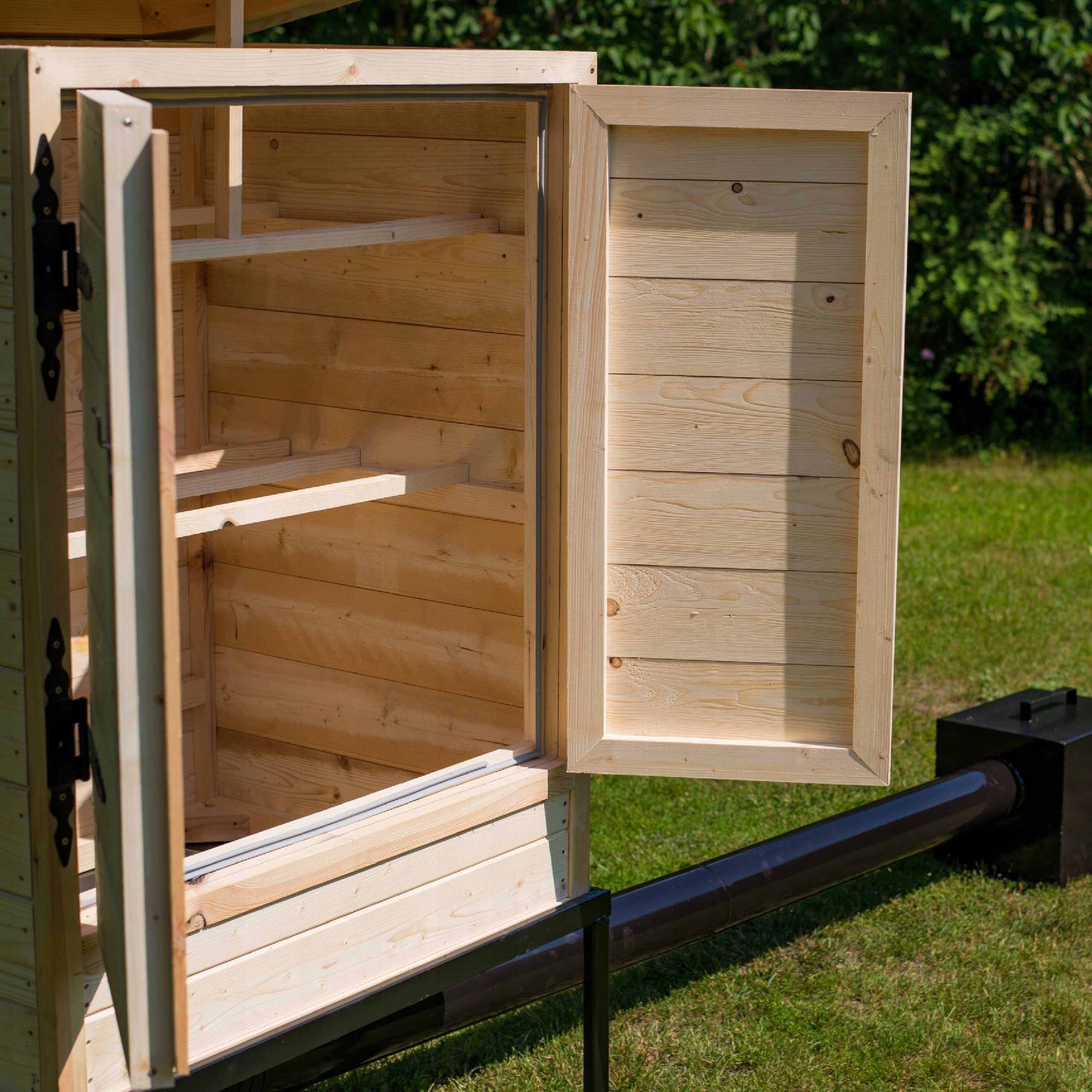 - КОПИЛЬНУЮ КАМЕРУ С ДВЕРЬЮ с крышей из доски (дерево СКАНДИНАВСКАЯ ЕЛЬ) 20 [мм] (+/-2 мм) с размерами 110x70x180[см]