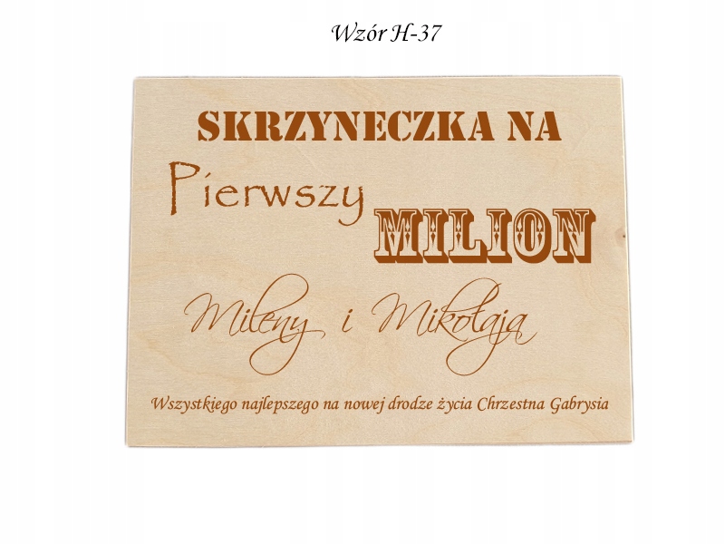 <р> Пожалуйста, укажите выбранный вами узор в комментарии. <р> Пожалуйста, предоставьте подробную информацию о выбранном шаблоне в комментарии. <р> (в зависимости от шаблона: имя, ник, возраст, дата) <р> В предложение входит только коробка с гравировкой. <р> Предложение не включает товары внутри.Размеры коробки с гравировкой: