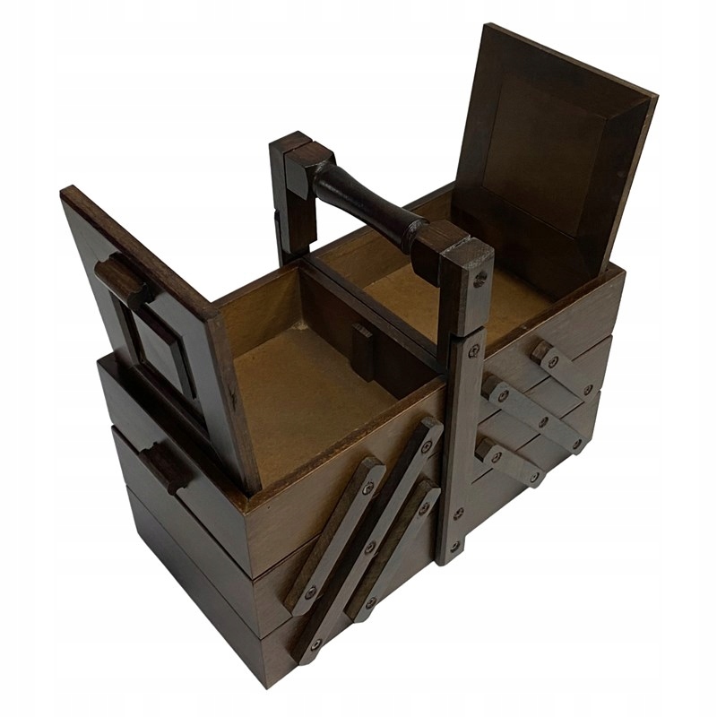 Большой декоративный деревянный ящик для швейных принадлежностей и аксессуаров.