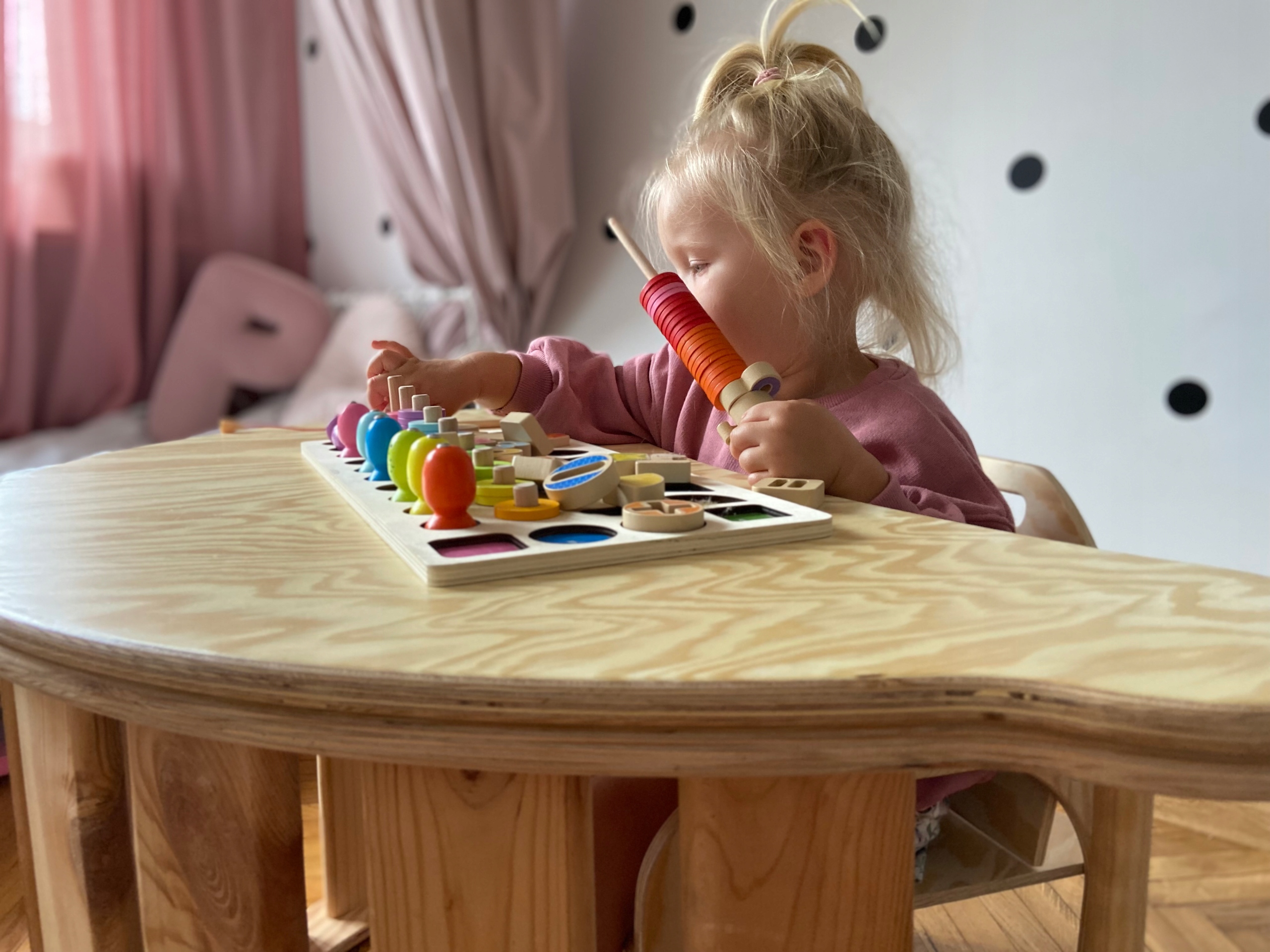 - Конструкция и возможности использования качалки идеально соответствуют Монтессори философия. Он поддерживает развитие моторики, побуждает малыша играть с движениями, учит координации.