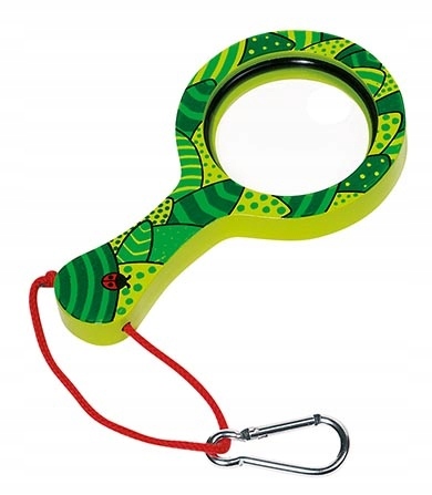 Лупу можно повесить на рюкзак или ремень брюк с помощью металлического карабина, благодаря чему юный исследователь ее не потеряет.