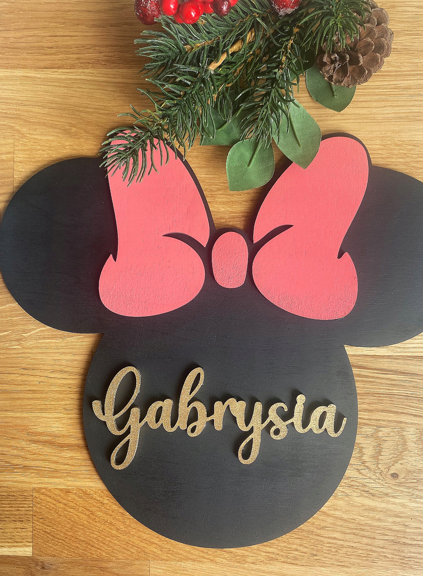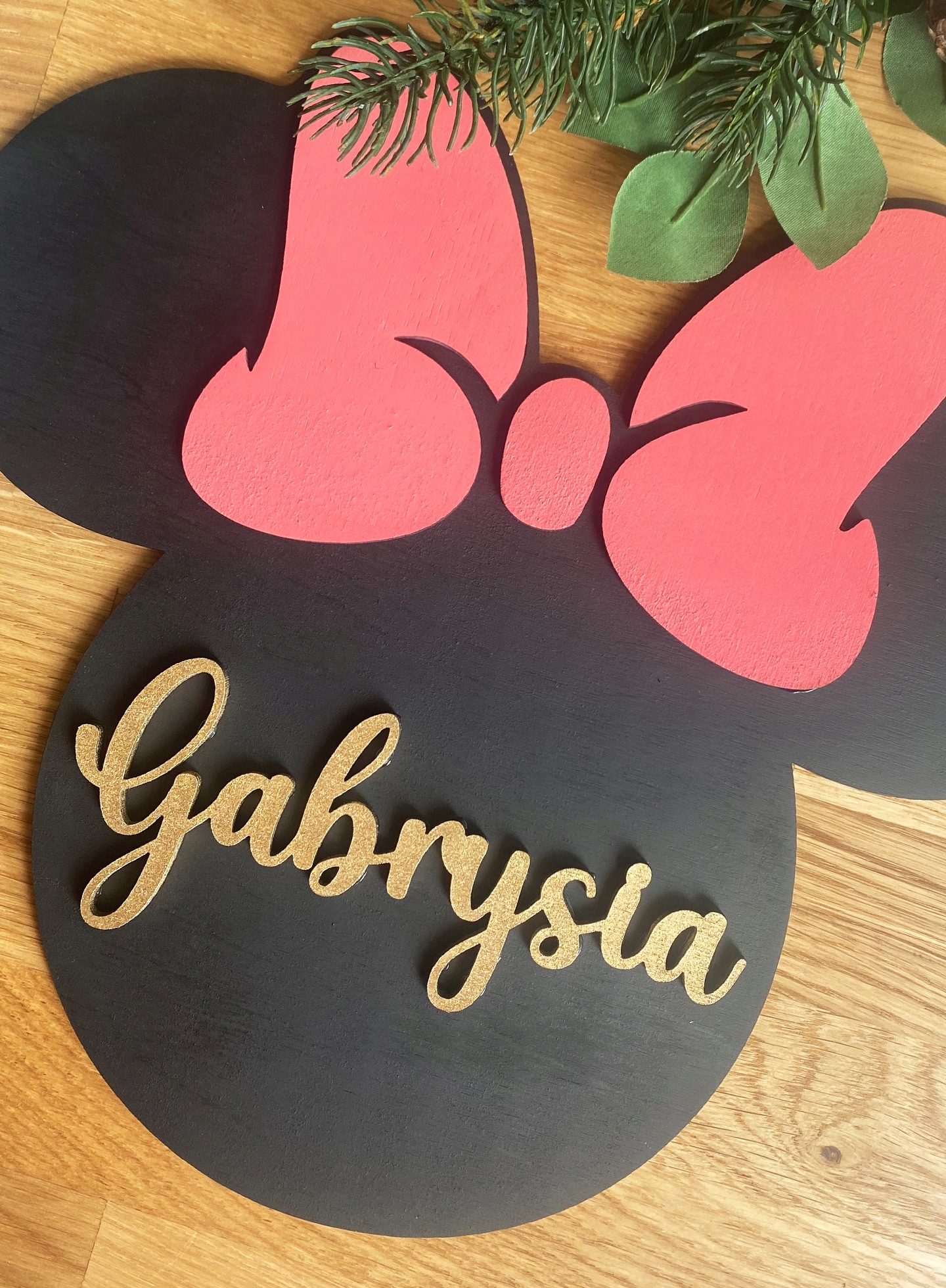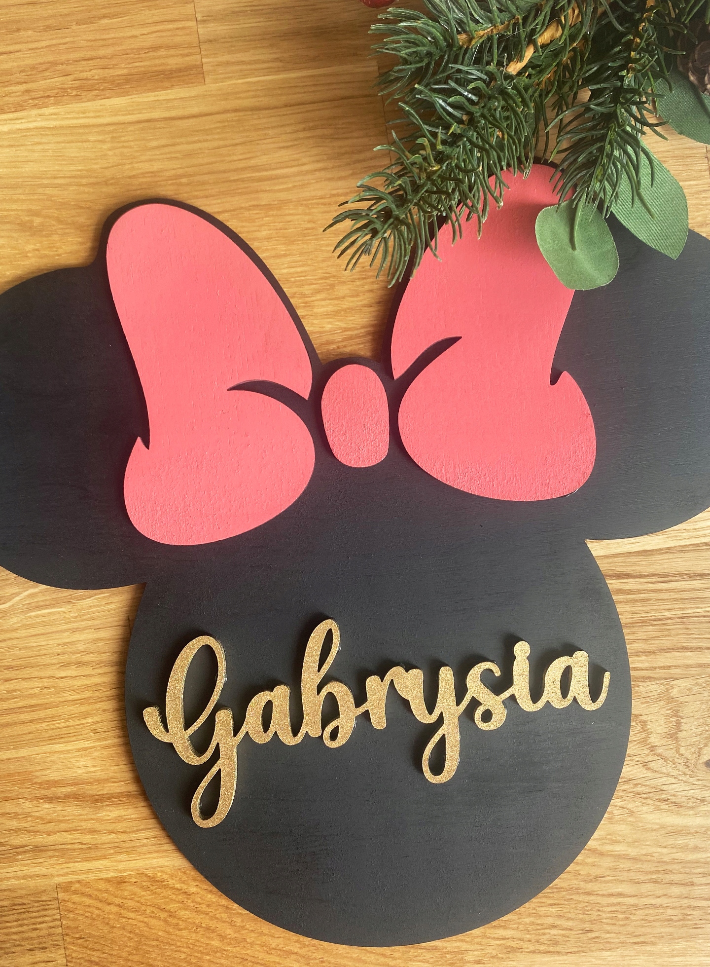ДЕРЕВЯННАЯ ТАРЕЛКА МИННИ МАУС И С ЛЮБЫМ ВАШИМ ИМЯ