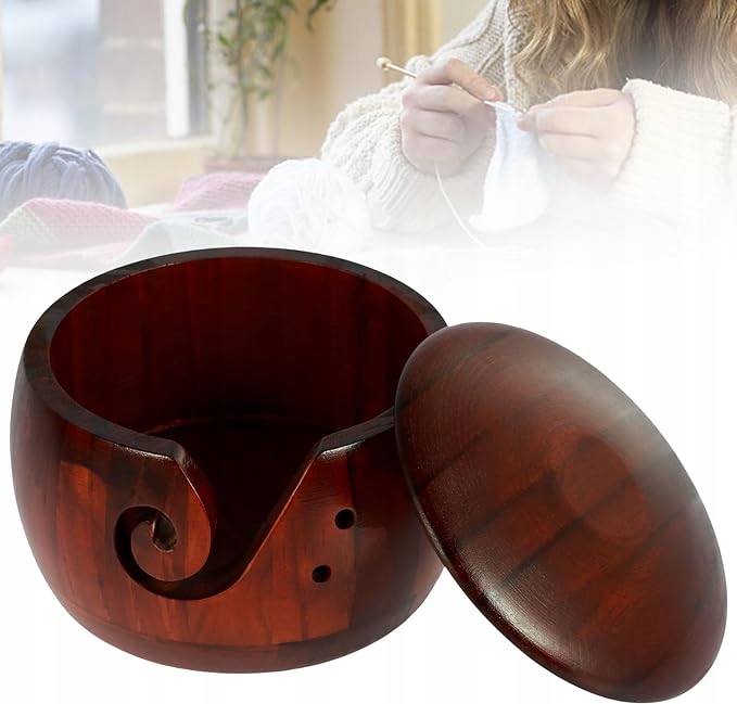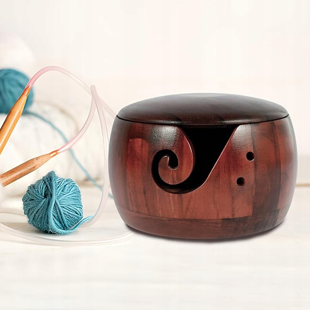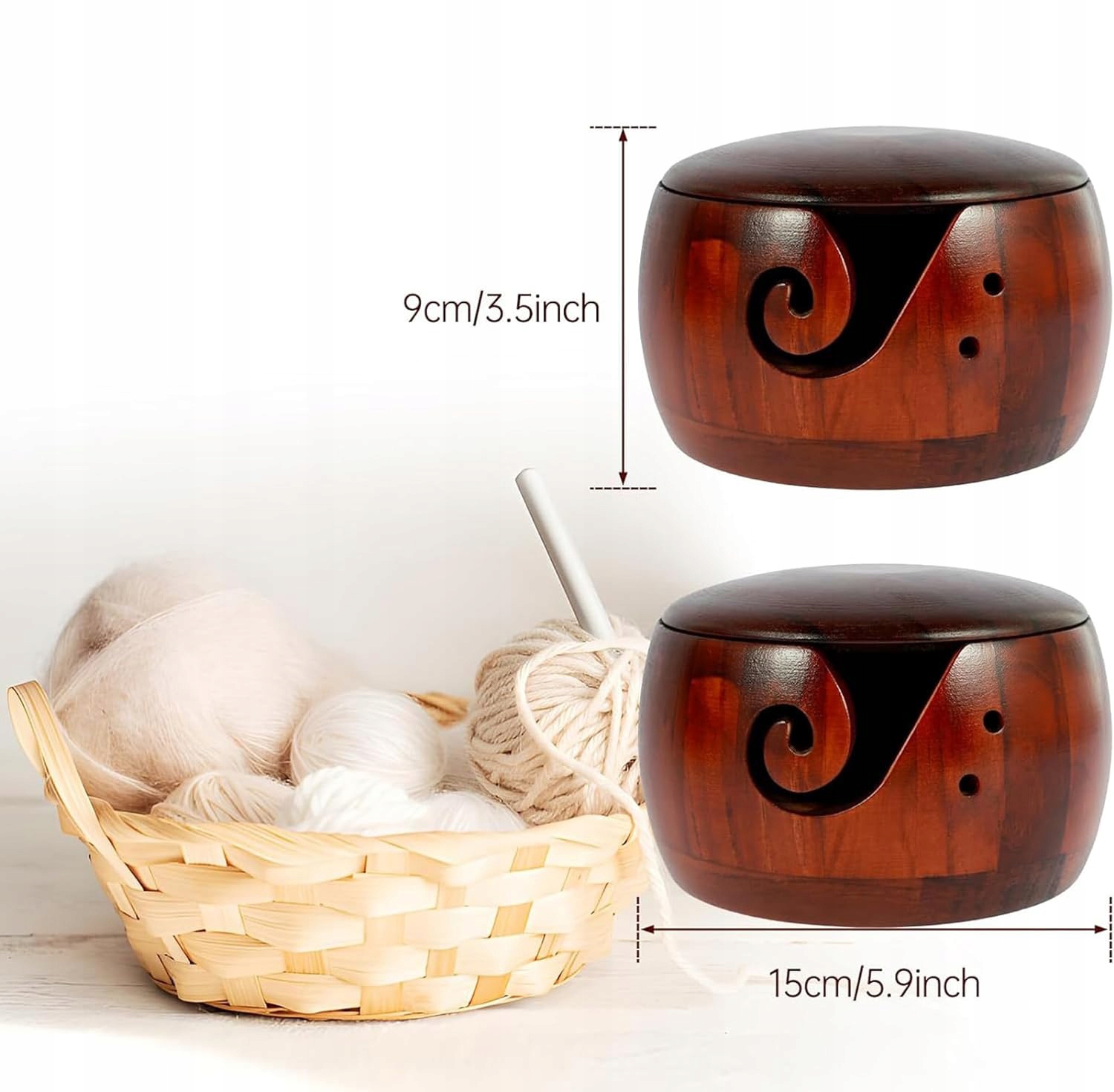 Деревянная миска пряжи с крышкой + 12 частями набора вязания крючком