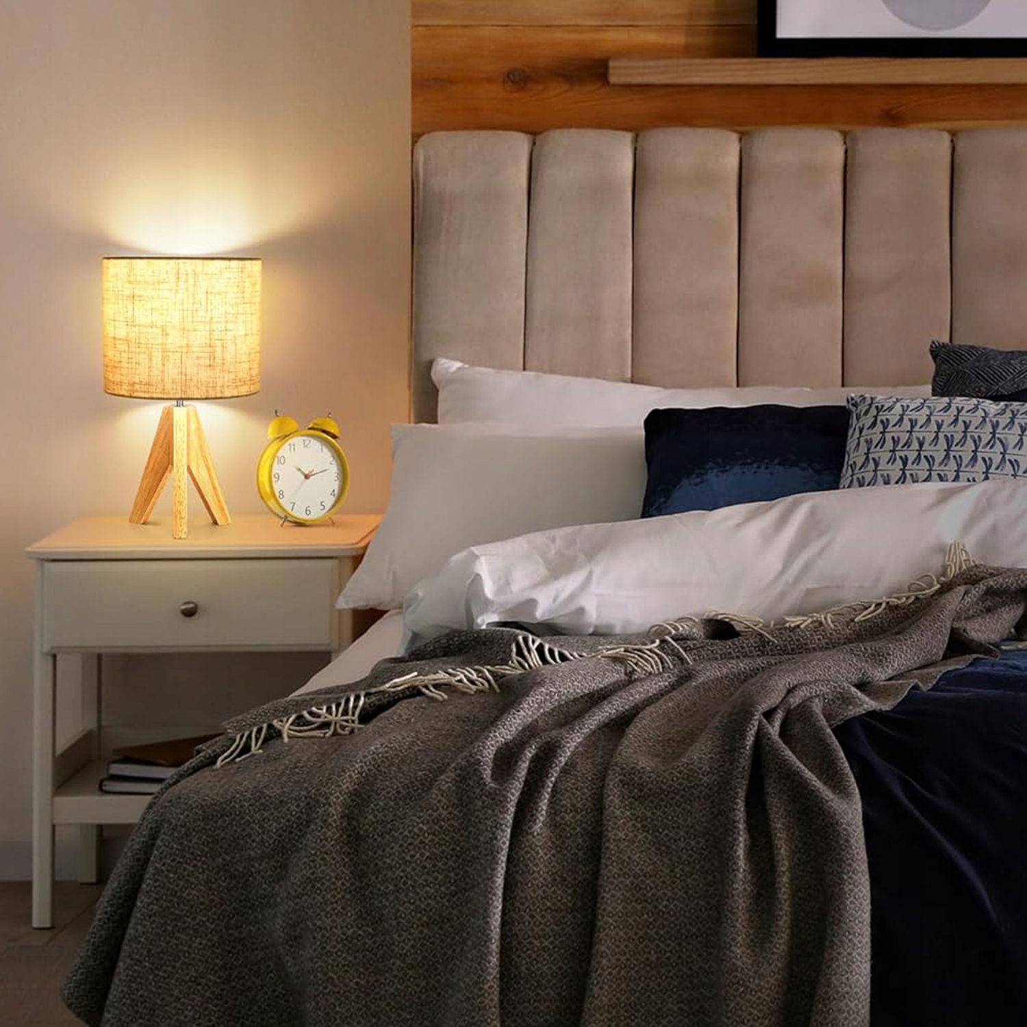 💡Неподвластный времени дизайн: Подставка из массива дерева хорошо сочетается с абажуром из льняной ткани. Простой стиль и нейтральные цвета хорошо сочетаются как с современной, так и с традиционной мебелью и идеально подходят для спальни, гостиной, офиса и т. д.