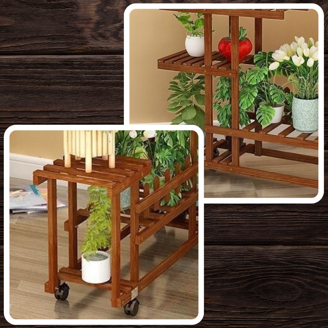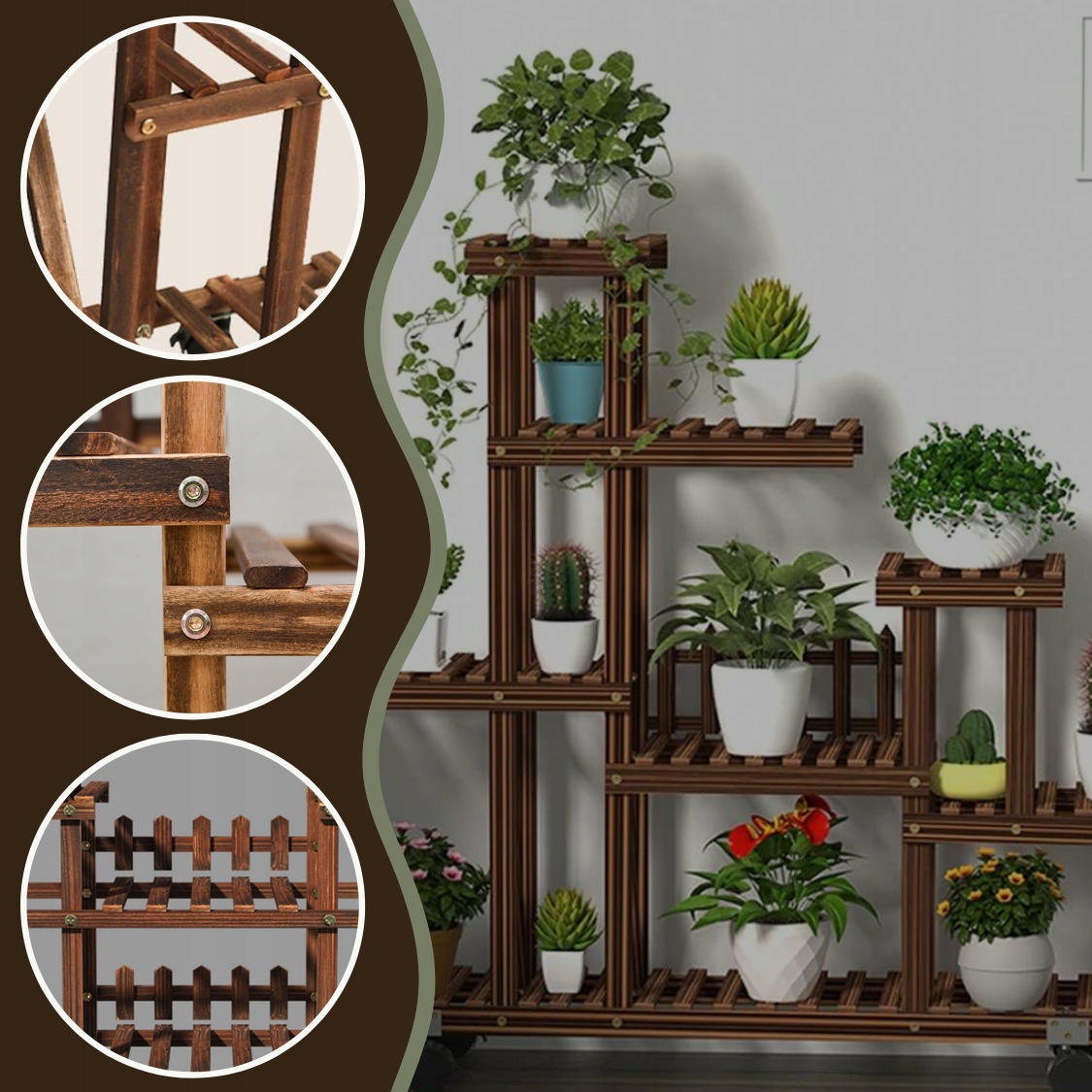 Наша подставка тщательно изготовлена из карбонизированной древесины, что делает ее чрезвычайно прочной и устойчивой к повреждениям. Мы придаем большое значение качеству нашей подставки для цветов. Древесина, из которой он изготовлен, тщательно карбонизирована, что делает его более прочным и долговечным. Вы можете быть уверены, что наш стенд прослужит Вам долго, не потеряв своей солидности и очарования.