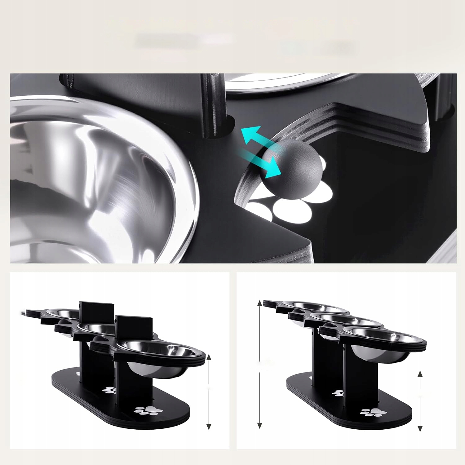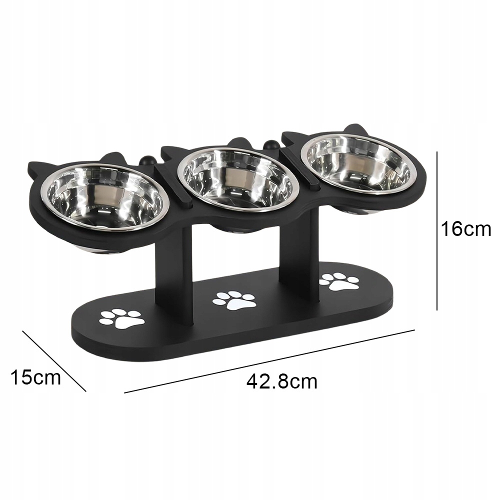 В комплект входят три отдельные чаши из нержавеющей стали, устойчивые к ржавчине и прочные. Вы можете легко отделять сухой корм, влажный корм и воду, обеспечивая гигиену и удобство для повседневного использования.