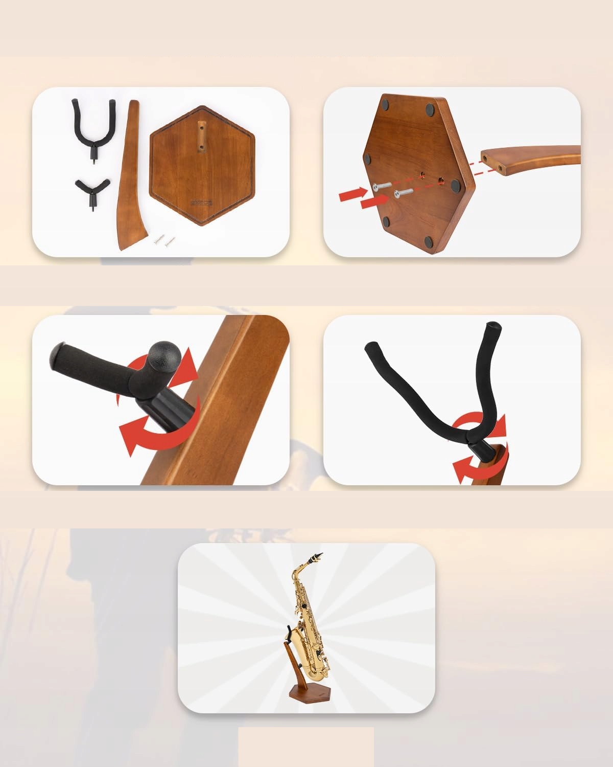 Дизайн создан для саксофонов альт и тенор и прекрасно презентует инструмент в любом интерьере – от домашней гостиной до профессиональной студии. Качество отделки на уровне мебели означает, что подставка выполняет не только практическую, но и декоративную функцию.