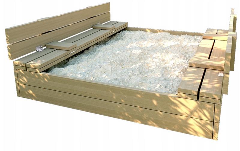 Закрытая, большая, фантастическая песочница для ваших детей со скамейками, которая в сложенном виде закрывает всю поверхность песка. Защищает от загрязнений, поэтому вы можете быть спокойны за своих детей.