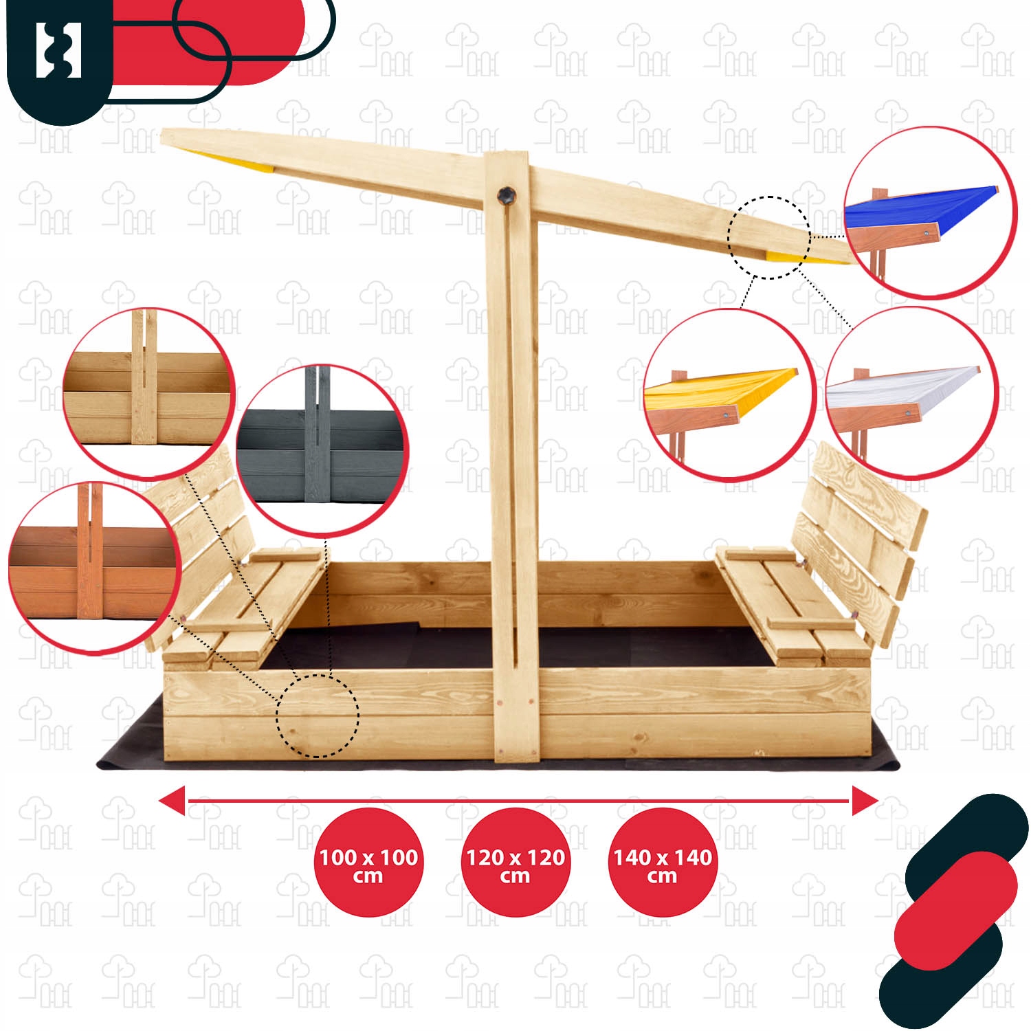 Песочницы оснащены двумя складными скамейками, которые в сложенном состоянии защищают песок от загрязнений , таких как листья, мусор или животные. Дополнительно они пропитаны экологическим препаратом, соответствующим стандарту EN71-3, что гарантирует высочайший уровень безопасности. Входящий в комплект изоляционный агротекстиль предохраняет песок от смешивания с почвой, дополнительно не дает прорваться растениям, что позволяет сохранять песочницу чистой в течение длительного времени. Брезент — идеальная защита песочницы от погодных условий. Он защищает от дождя, солнца и ветра, а также незаменим зимой.