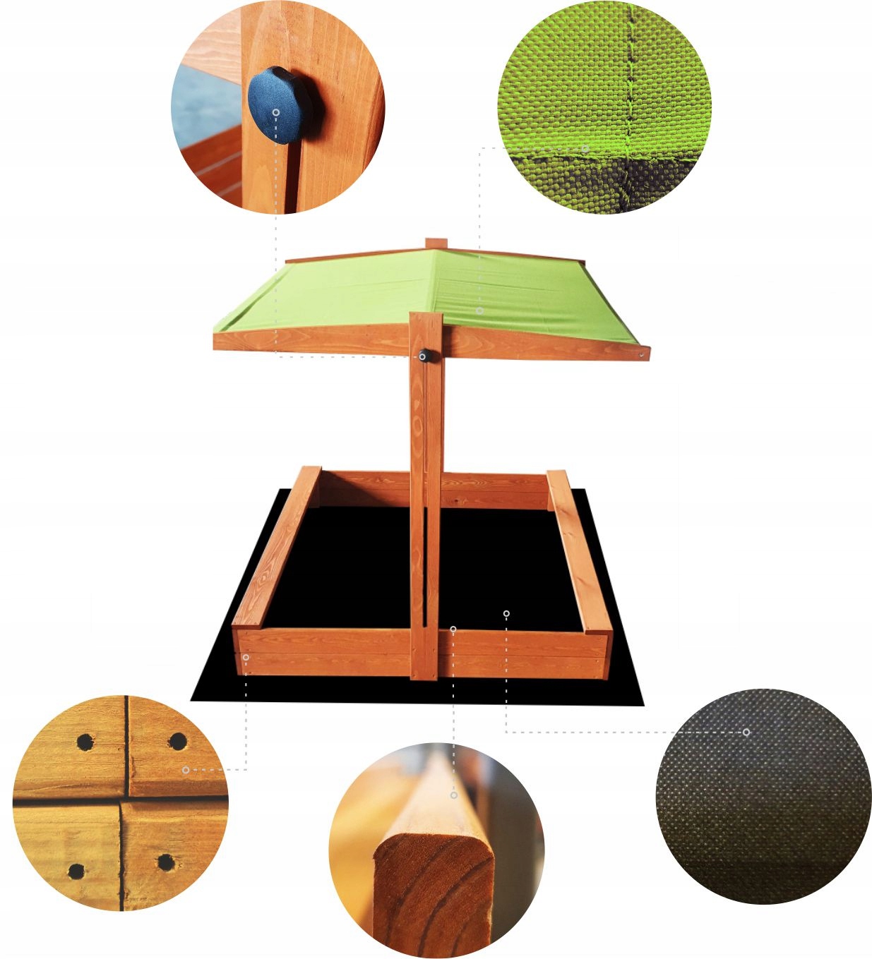 ДЕРЕВ'ЯНА ПІСЧНИЦЯ ПРОСОКОВАНА З ДАХОМ ЛАВКИ