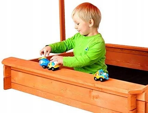 - Долговечная: песочница из еловой или сосновой древесины, пропитанная экологической водной пропиткой. Оснащен навесом, защищающим детей от солнца.