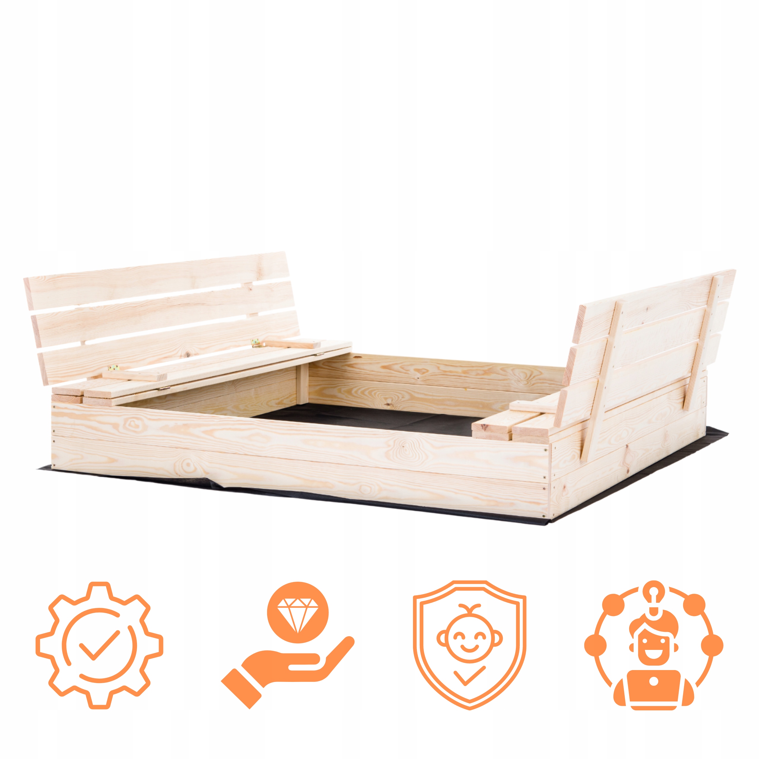 ДЕРЕВЯННАЯ ПЕСОЧНИЦА С ЗАКРЫТЫМИ ЛАВЬЯМИ 140х140 БЕСПЛАТНО ПРОИЗВОДИТЕЛЮ!