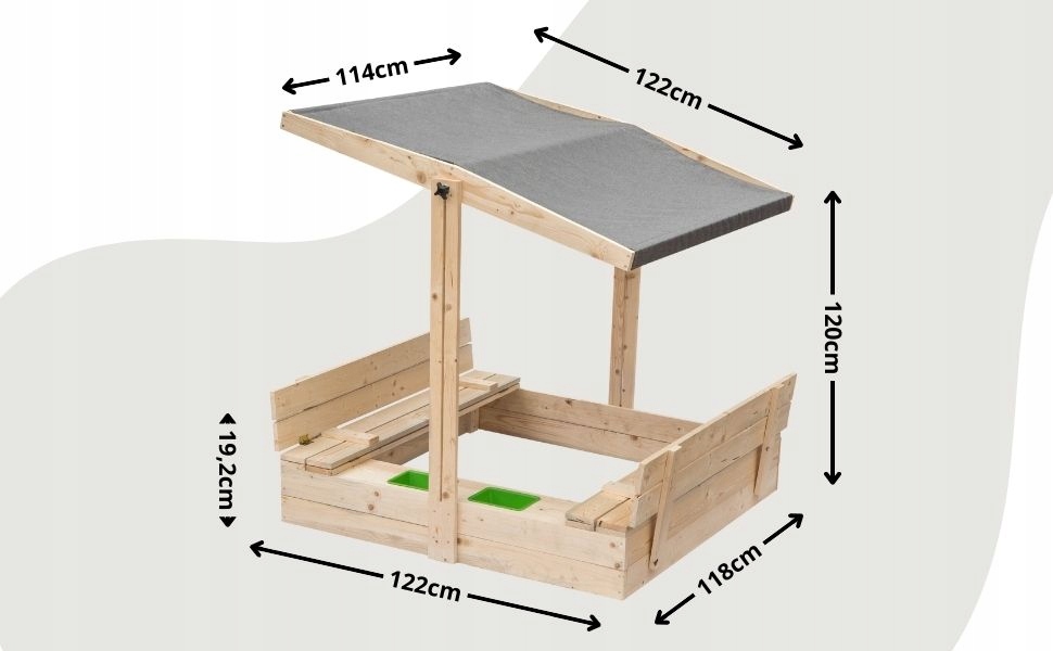 Изготовлен из водонепроницаемого материала с защитой от ультрафиолета, обеспечивает защиту от погодных условий, а значит, песочница прослужит долгие годы.