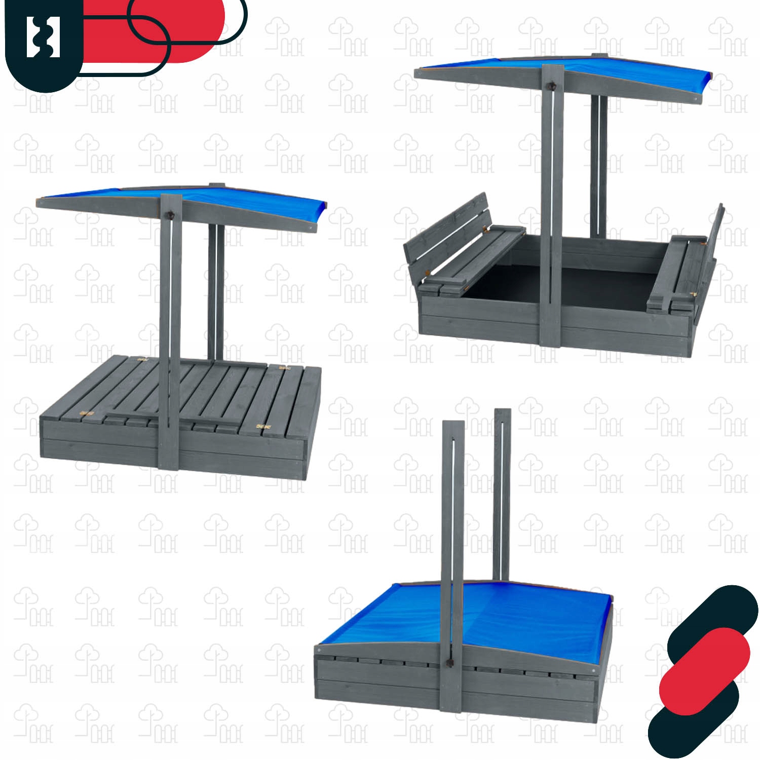 Песочницы оснащены двумя складными скамейками, которые в сложенном состоянии защищают песок от загрязнений , таких как листья, мусор или животные. Дополнительно они пропитаны экологическим препаратом, соответствующим стандарту EN71-3, что гарантирует высочайший уровень безопасности. Входящий в комплект изоляционный агротекстиль предохраняет песок от смешивания с почвой, дополнительно не дает прорваться растениям, что позволяет сохранять песочницу чистой в течение длительного времени. Брезент — идеальная защита песочницы от погодных условий. Он защищает от дождя, солнца и ветра, а также незаменим зимой.