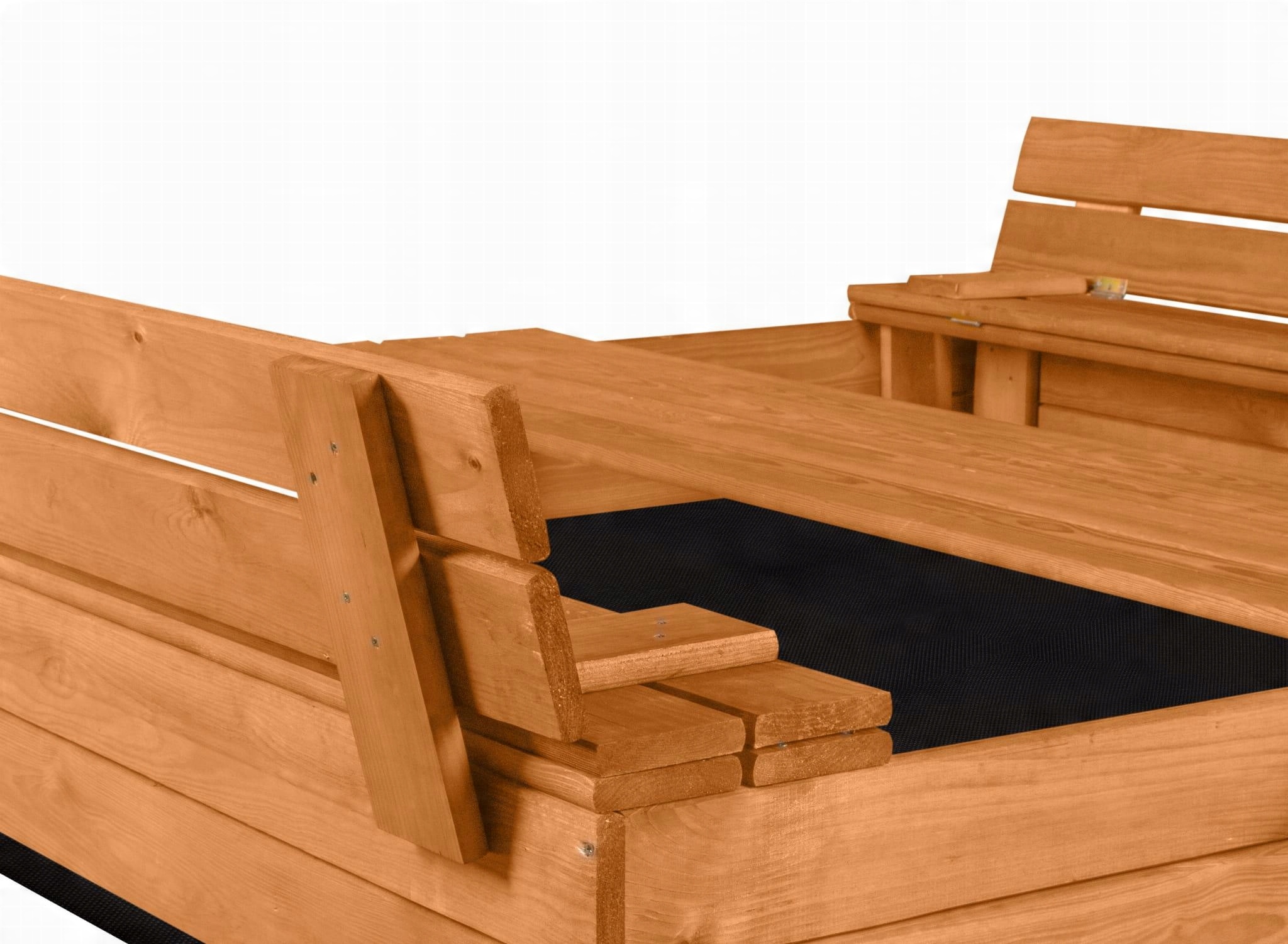 Деревянная песочница с закрытой пропитанной игровой площадкой с 2IN1 скамейками