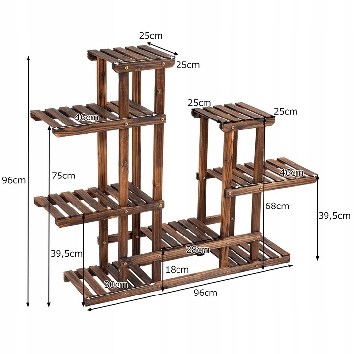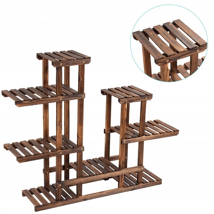 По указанным выше причинам деревянную подставку для цветов можно также разместить в саду или на террасе. В первом случае цветы в горшках создадут чудесный, красочный акцент на фоне деревьев или живой изгороди. Деревянная подставка для цветов на балкон – отличная альтернатива висящим за перилами цветочным горшкам, которые трудно увидеть со стороны квартиры. Предлагаемая полка для растений представляет собой прочную конструкцию, изготовленную из высококачественной лакированной древесины ели. Его с успехом можно разместить на открытом воздухе, поскольку он устойчив к изменению погодных условий – останется прочным и эстетичным на протяжении многих лет.