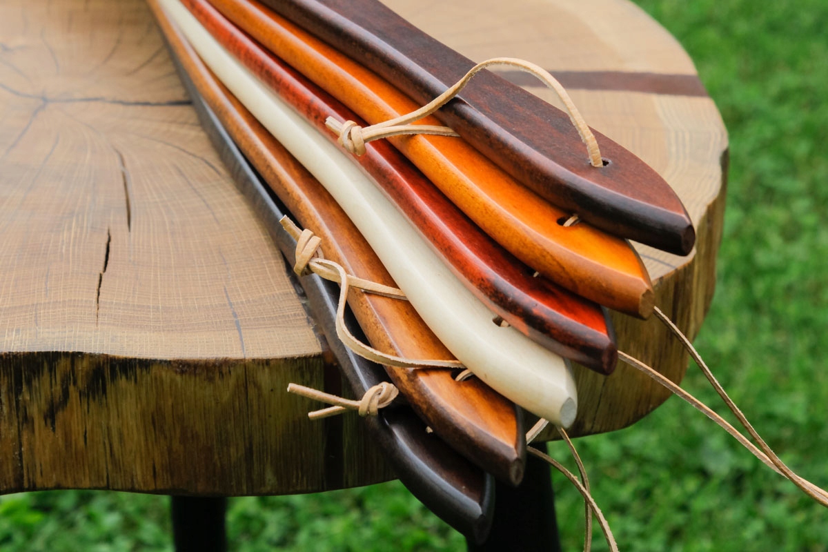 Длинный деревянный рожок для обуви цвета натурального дерева.