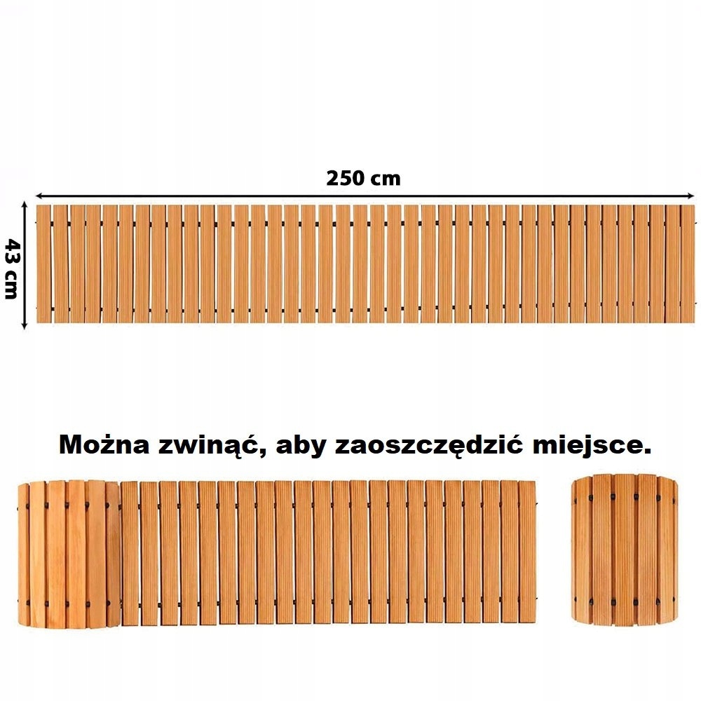 Дорожка из кедрового дерева имеет длину 250 см и ширину 43 см.