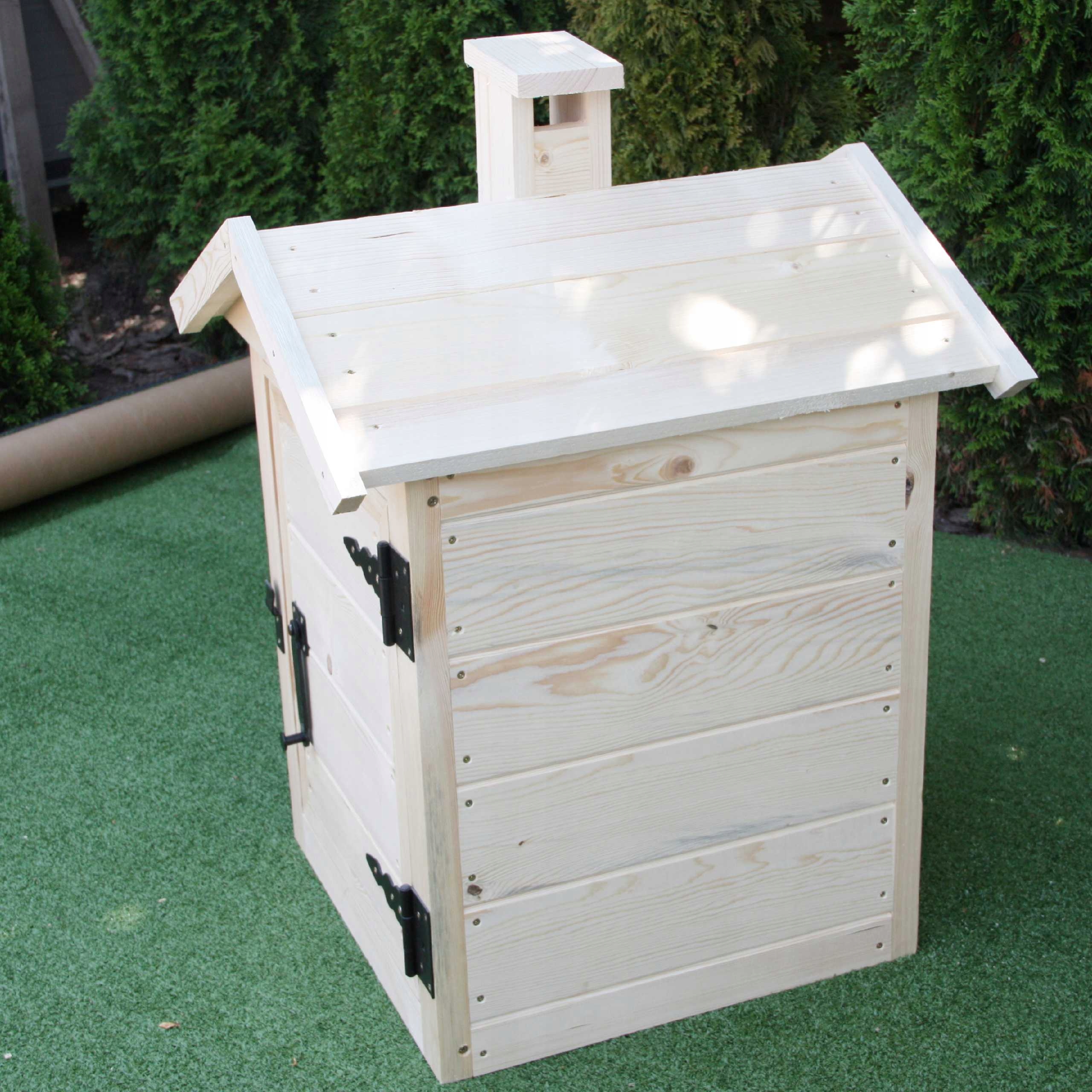 - КОПТИЛЬНУЮ КАМЕРУ С КРЫШЕЙ из доски (СКАНДИНАВСКАЯ ЕЛЬ) 20[ мм] (+/-2 мм) с размерами 50x50x80[см) с крышей и дымоходом