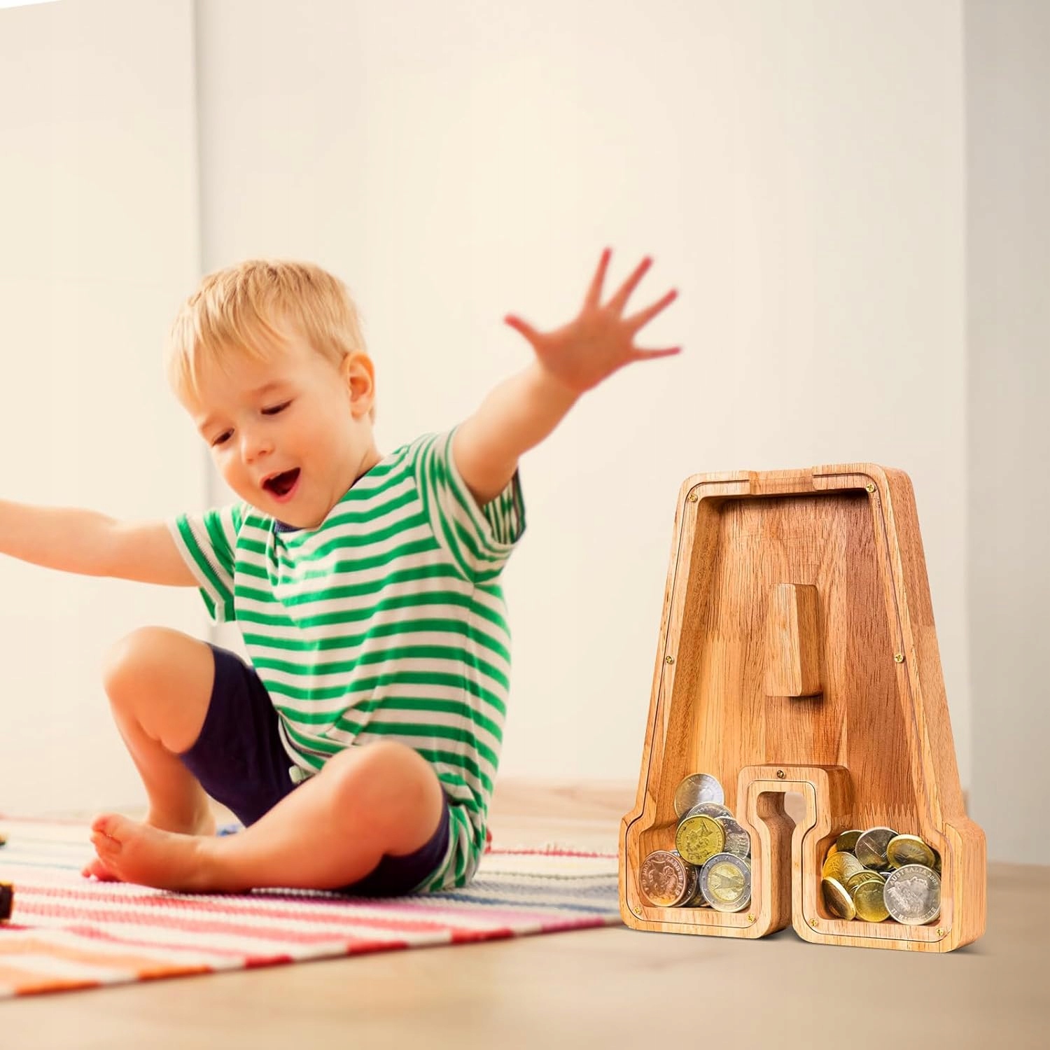 УНИКАЛЬНЫЙ ДИЗАЙН. Эта большая копилка в форме буквы, изготовленная из 100% экологически чистого дерева, очень БОЛЬШАЯ. Прозрачная акриловая крышка позволяет заглянуть внутрь монеты и следить за процессом сбережений.