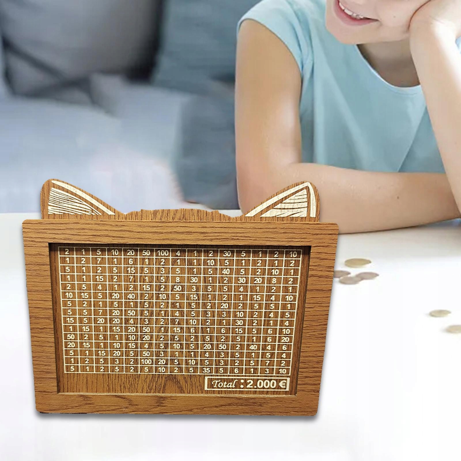 [Уникальный дизайн]: Деревянная копилка со стойкой. После каждого депозита вы можете отметить номер на счетчике, чтобы узнать, когда вы сможете завершить свой план депозита.