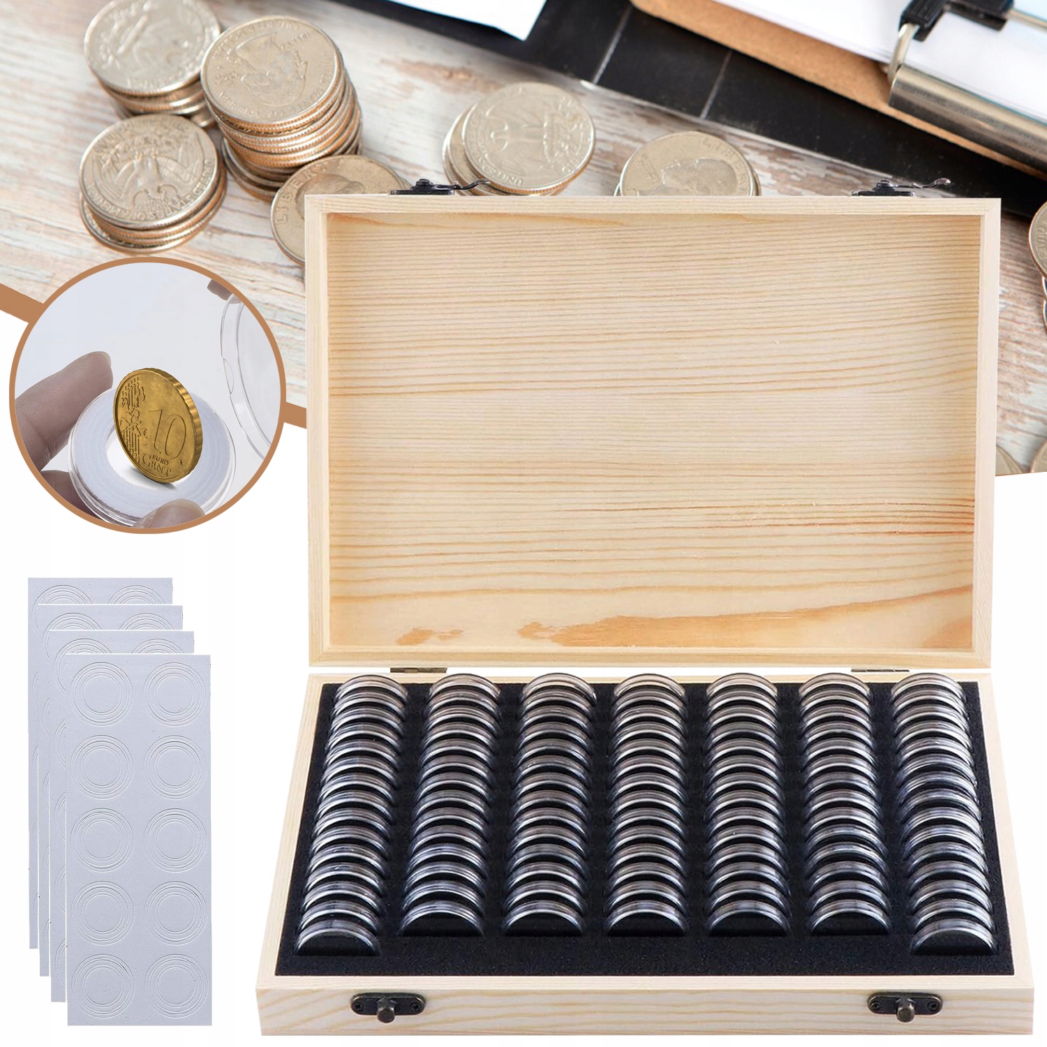 ДЕРЕВ'ЯНА Скринька для зберігання монет з круглими капсулами для монет