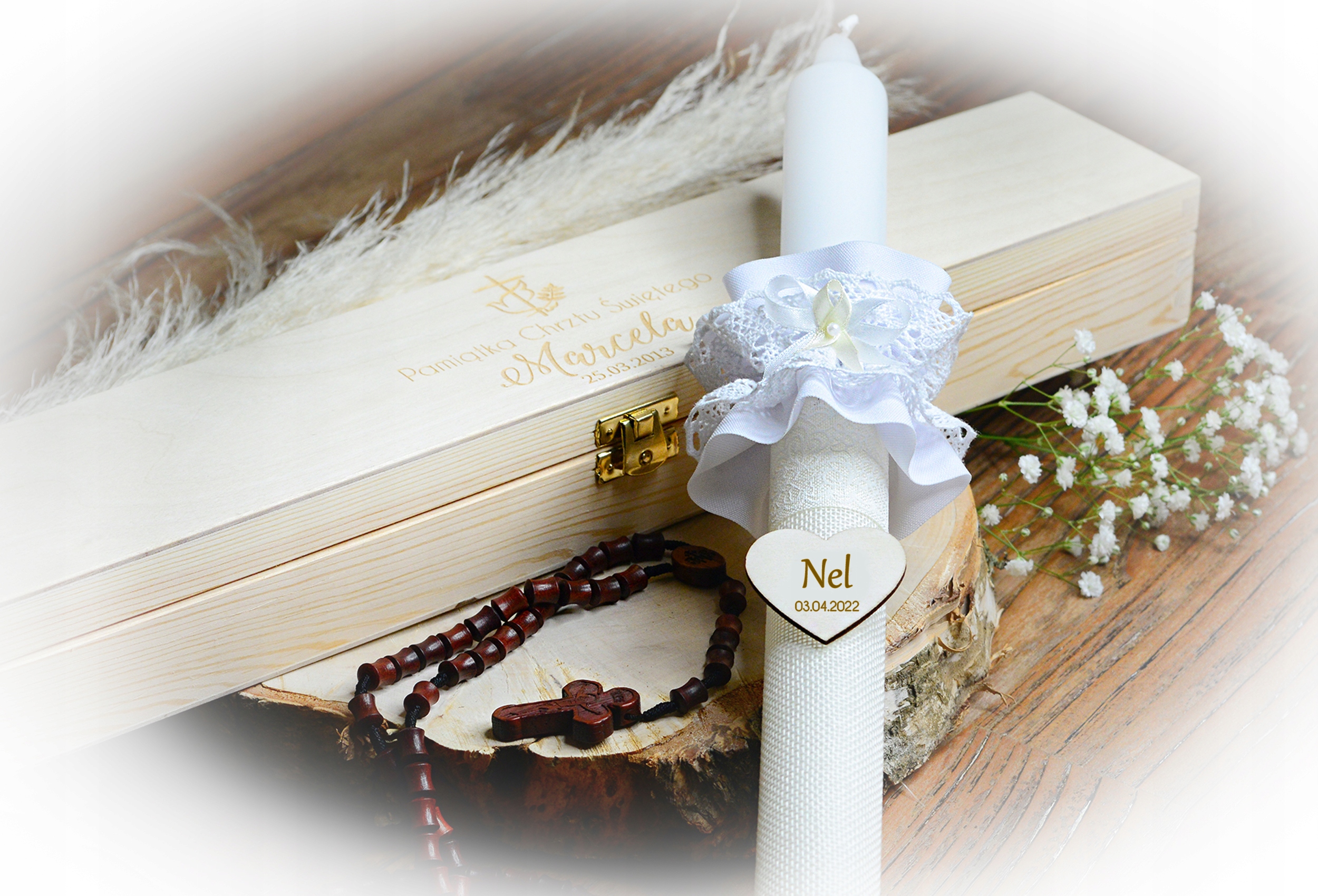 ДЕРЕВ'ЯНА Скринька ГРАВІЮВАННЯ СВІЧКА ОДЯГ ХРЕЩЕННЯ KB