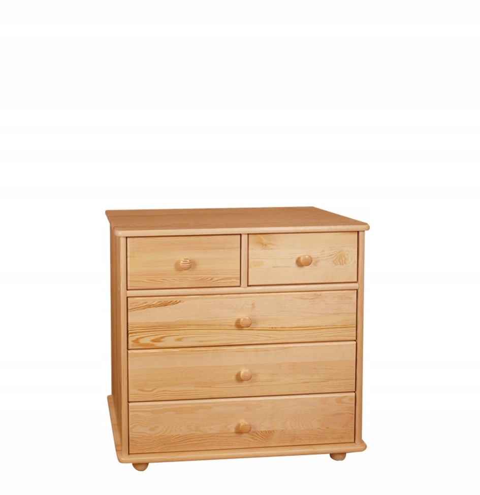 Комод Drewal2-Meble-Filipek полностью изготовлен из массива сосны (+ спинки и дно ящиков изготовлено из ДВП), т.е. из натурального, экологического материала. Именно это отличает нашу мебель, изготовленную только из натуральной древесины одинаковой толщины – мы не идем на компромиссы.