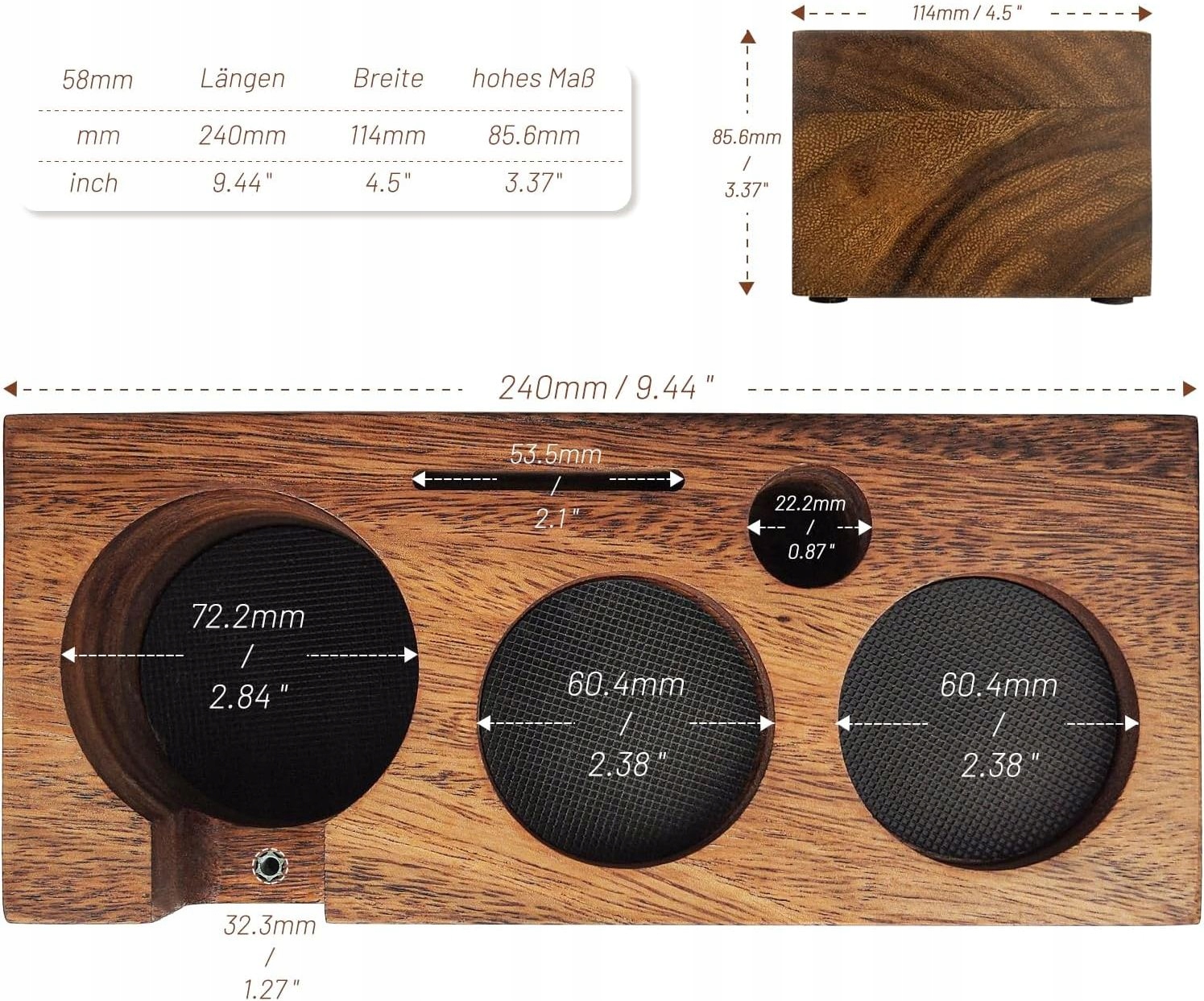 Деревянный ореховый ореховый тампер Tamperowa 58 мм в фильтре tft