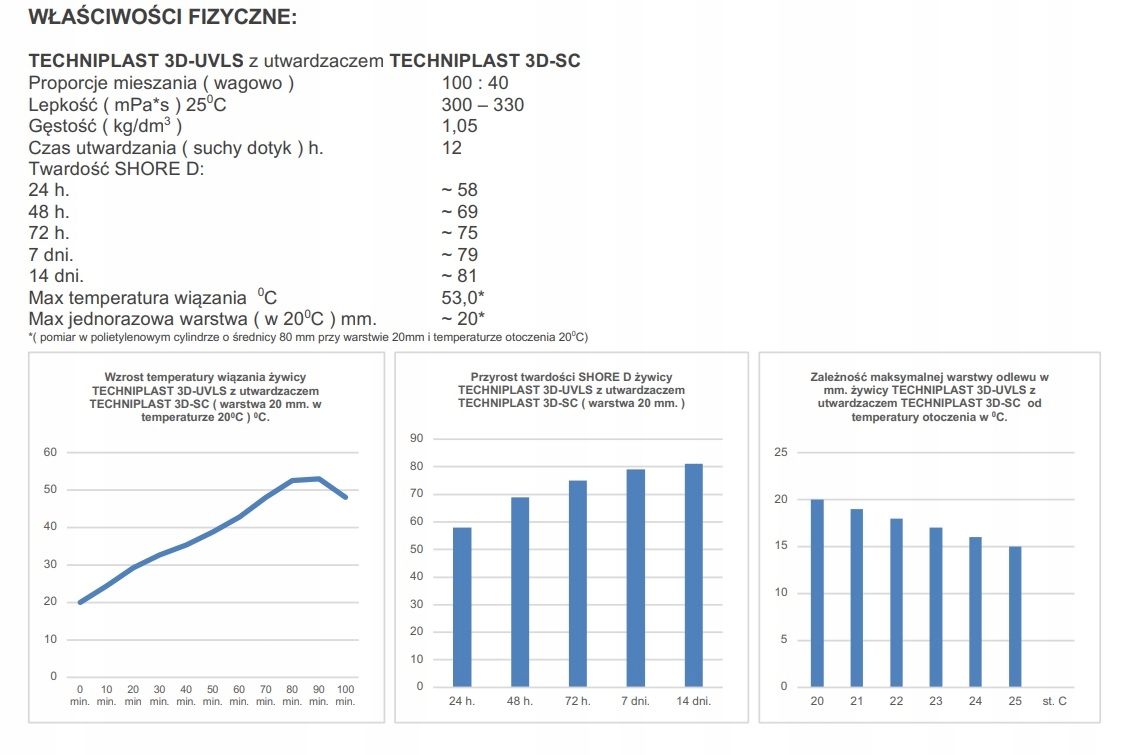Смолы TECHNIPLAST 3D были разработаны для поддержания минимально возможной температуры во время схватывания, однако во время нанесения и на протяжении всего процесса схватывания необходимо уделять особое внимание.