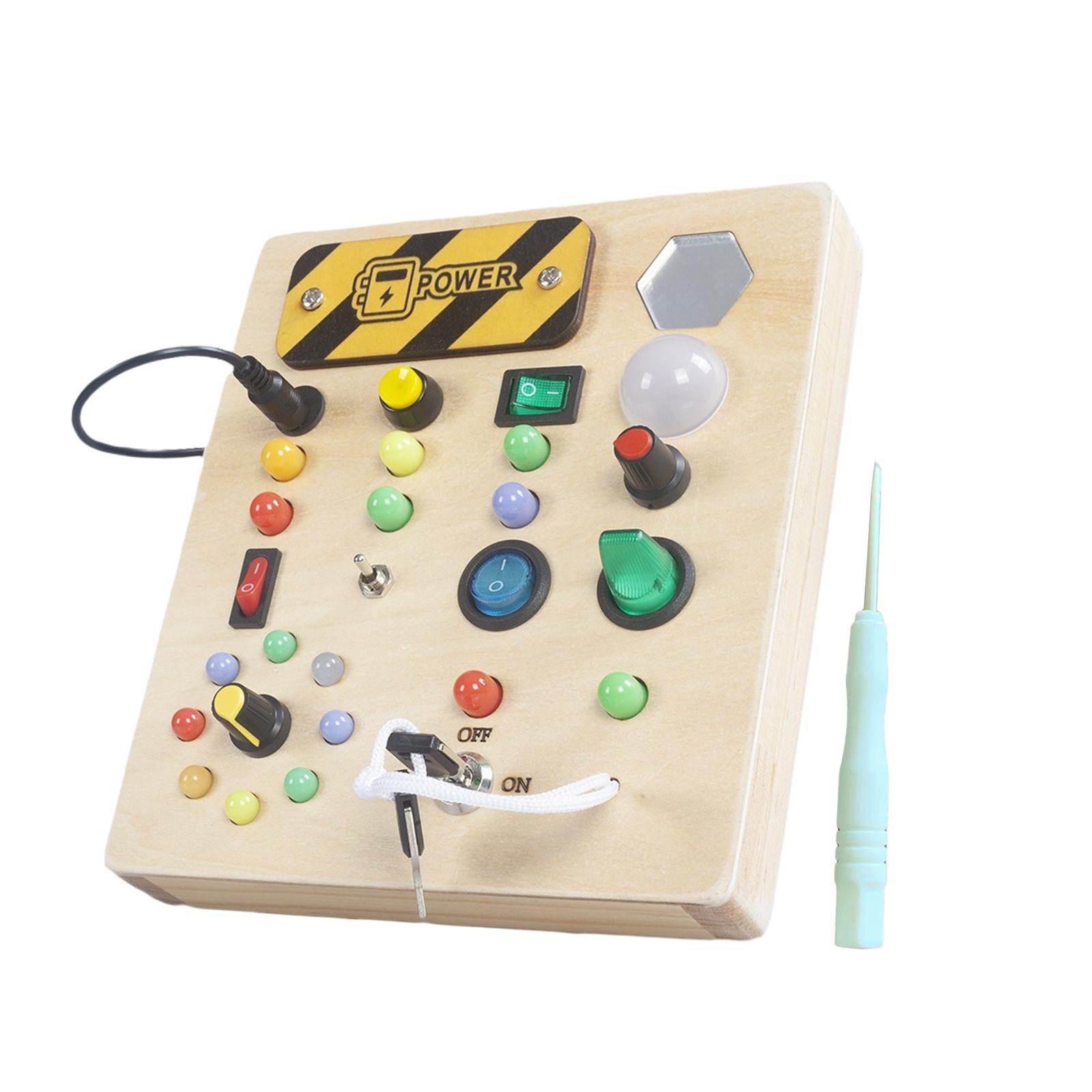 [Светодиодная доска присутствия]: доска присутствия с мини-светодиодами, различными переключателями для управления подсветкой разных цветов, развивающими игрушками для детей. (Для этой доски требуются 2 батарейки типа ААА. (Батарейки в комплект не входят))