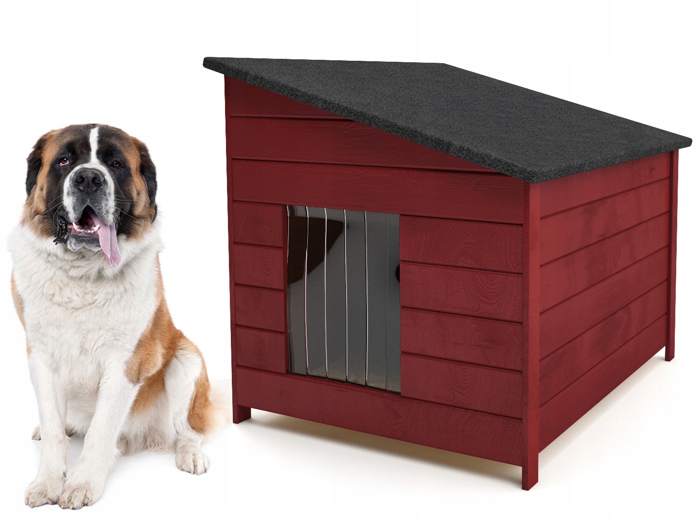 Конура идеально подходит для самых крупных собак, таких как сенбернар, дог, кавказская овчарка и др. Стены конуры выполнены из сушеной сосны (обшивка толщиной 1,5 см). Каждая стена утеплена пенопластом толщиной 2 см, а затем покрыта плитой HDF. Для изготовления пола использовалась влагостойкая плита OSB. В случае с крышей ее покрыли рубероидом. Мы включаем бесплатную занавеску, чтобы сохранить тепло внутри.