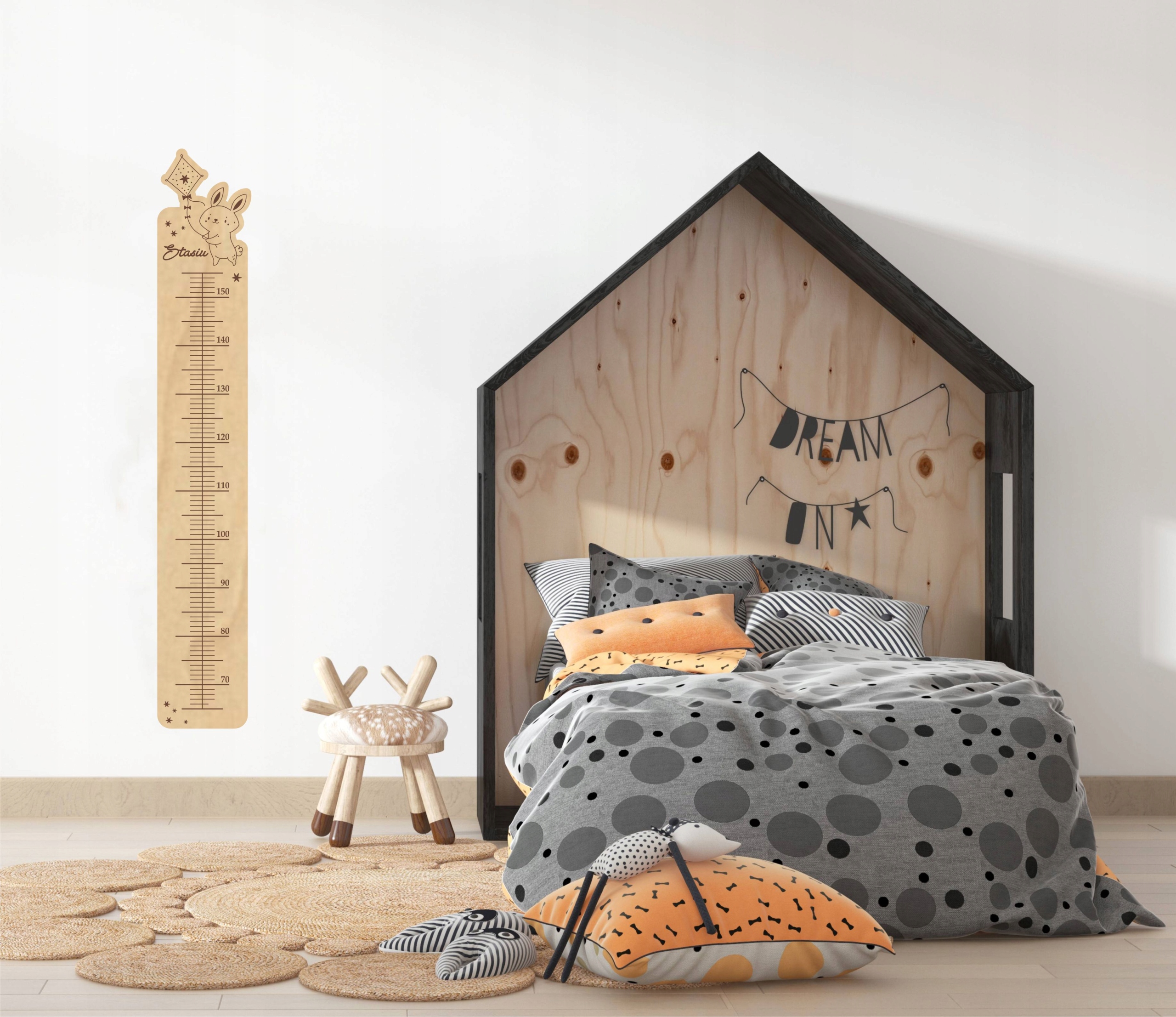 ДЕРЕВ'ЯНА ВИСОТОМІРА ІМЕННА ДИТЯЧА на стіні