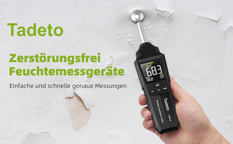 Благодаря использованию емкостной технологии, Tadeto TE0015 позволяет измерять влажность без необходимости повреждения поверхности материала. Это идеальное решение для людей, которые хотят отслеживать состояние стен, древесины или штукатурки без риска их повреждения. Точный зонд достигает глубины 40 мм, что позволяет тщательно анализировать влажность внутри материала. Благодаря этому вы можете быстро определить потенциальные проблемы и предпринять соответствующие действия.