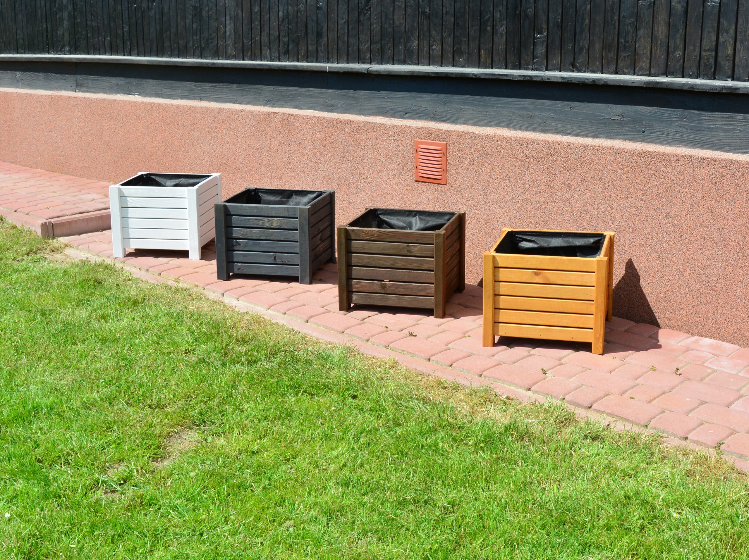 - Древесина окрашивается окунанием, препаратом, который помимо придания цвета пропитывает и защищает горшок от погодных условий. li>