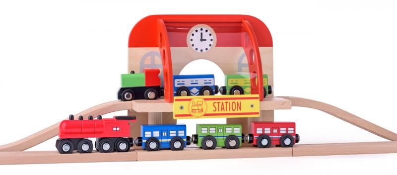 Станция деревянная, с интересной крышей из прозрачного пластика сверху. Нижняя часть закрыта потолком. Нижний и верхний уровни легко соединяются с путями. Набор совместим с большинством треков, доступных на рынке.