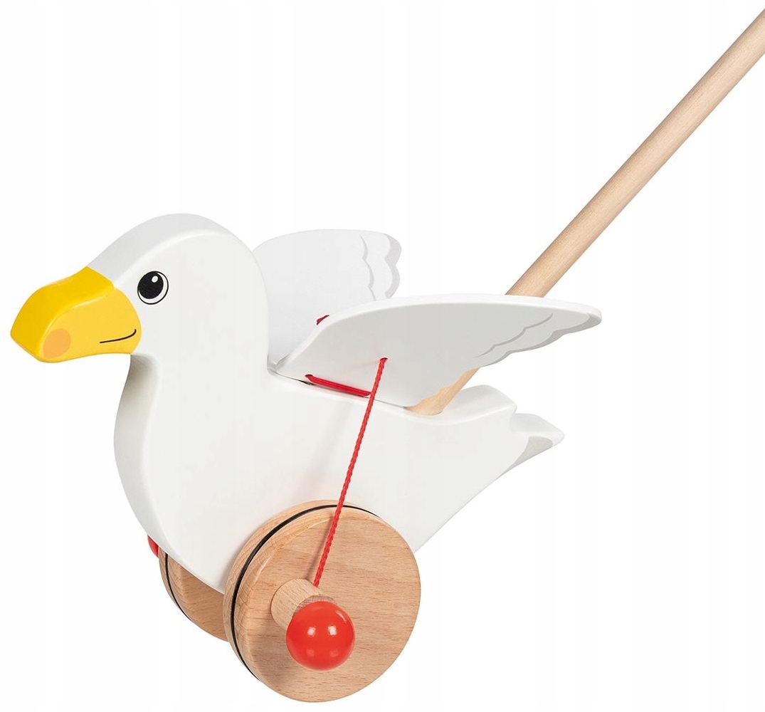 Шум моря, ветерок, крик чаек... Вы сможете сохранить эту морскую атмосферу надолго благодаря милой чайке, которую можно толкать. Чайка по имени Йонас станет замечательным спутником на летних прогулках для малыша, который только начинает делать свои первые шаги. Прогулки станут намного приятнее, и ваш малыш получит от них массу удовольствия. Чайка ответит тем же веселым хлопаньем крыльев во время движения. Игрушки-толкатели развивают крупную моторику и тренируют баланс. Дети любят толкать игрушки на палочке. Деревянные прослужат вашему ребенку долго.
